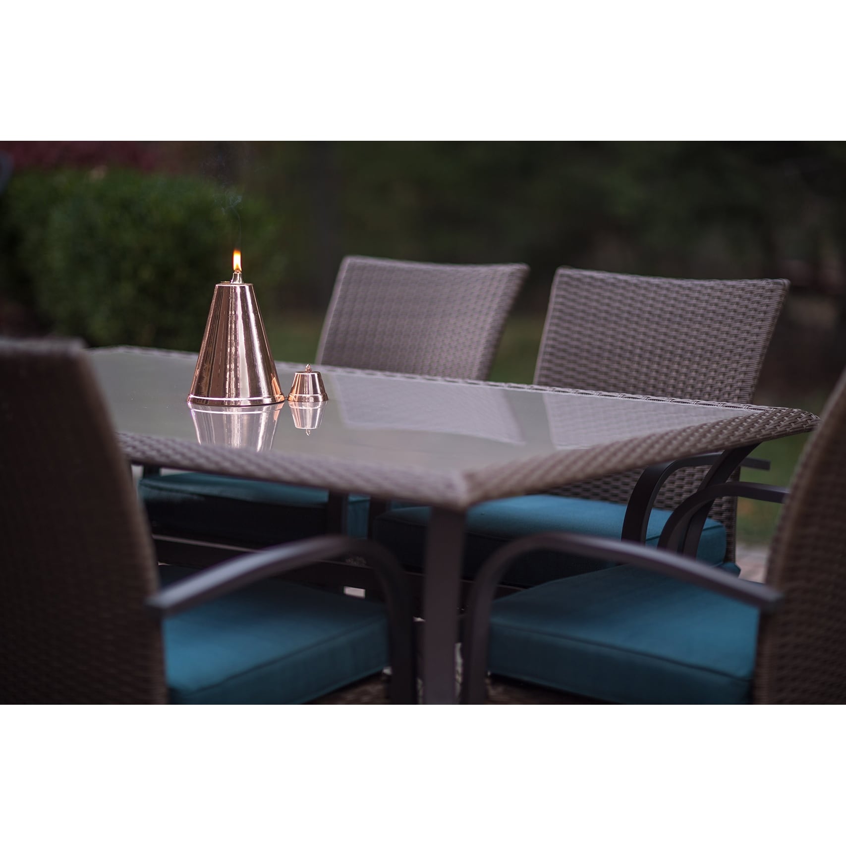 The torch head in this incredible Tiki Style Torch can be easily moved from its place on the cradle to wherever you want it, allowing you to use it alone as a striking tabletop centerpiece, or set it on the ground around your patio.