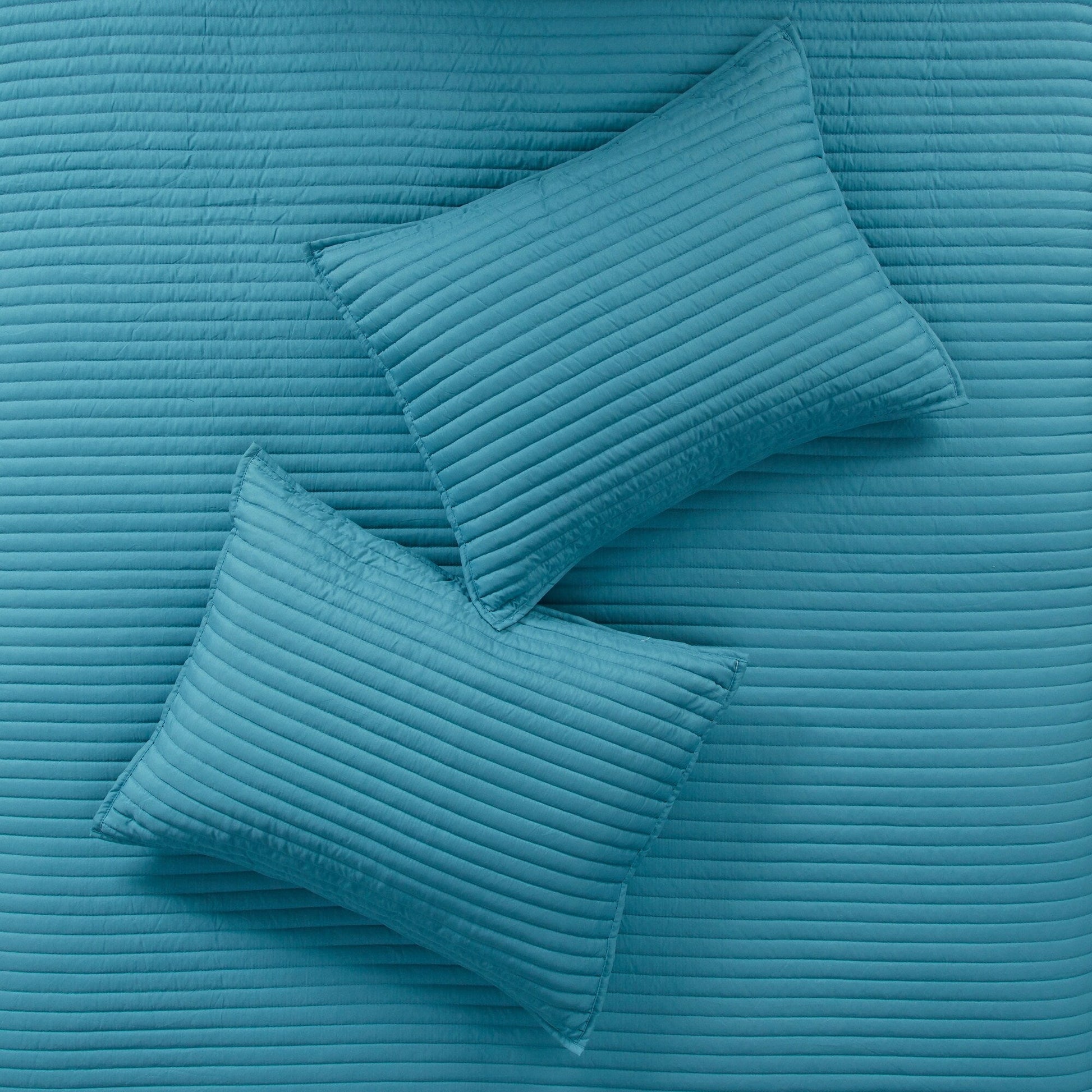 - The set includes a coverlet set with channel stitch quilting in navy color