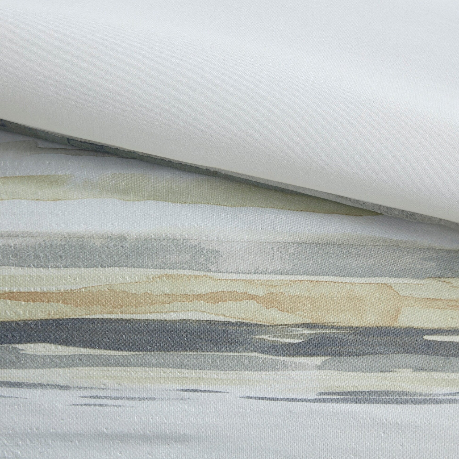 - Textured seersucker comforter features watercolor stripe in blue, navy and taupe hues and a blue reverse