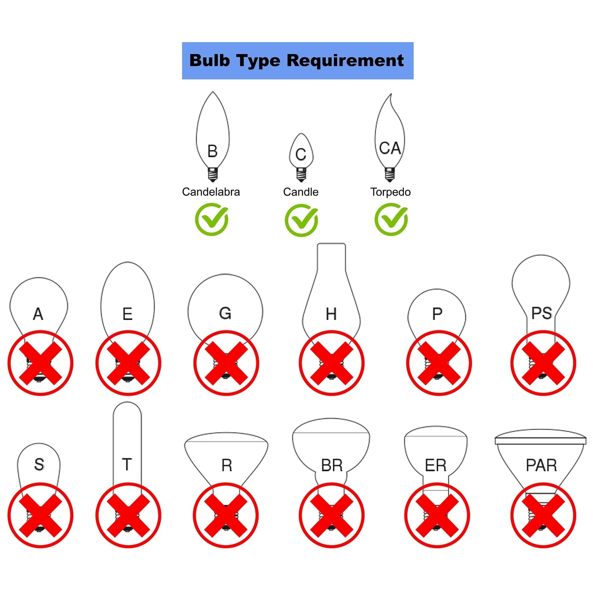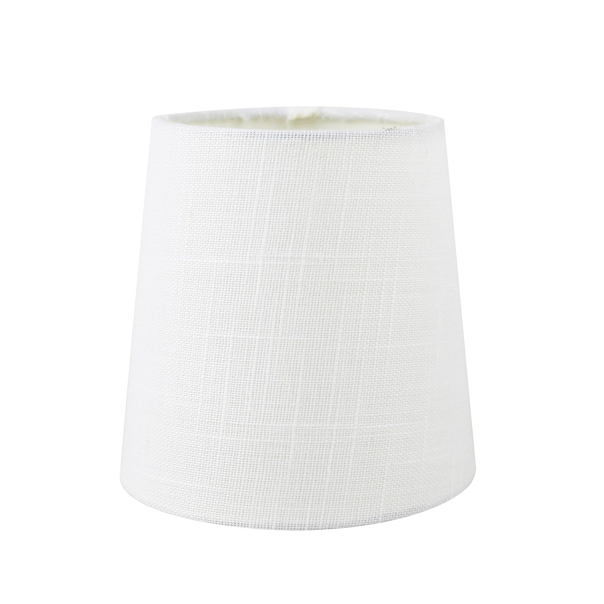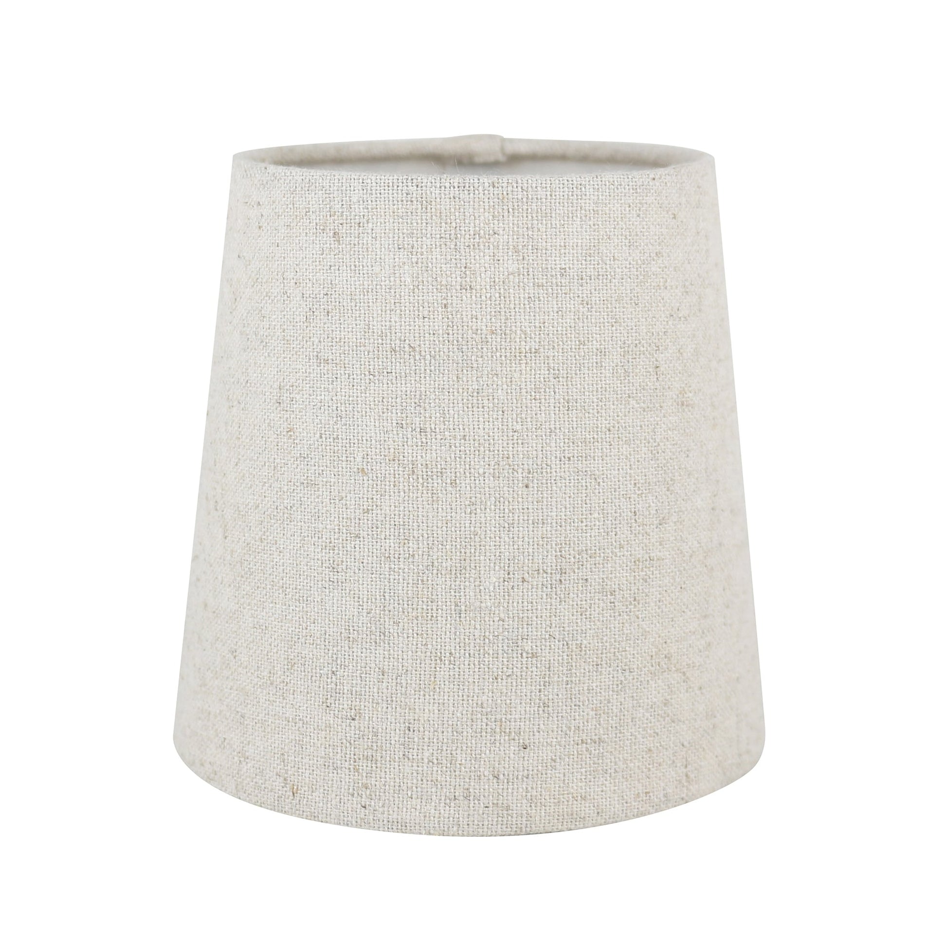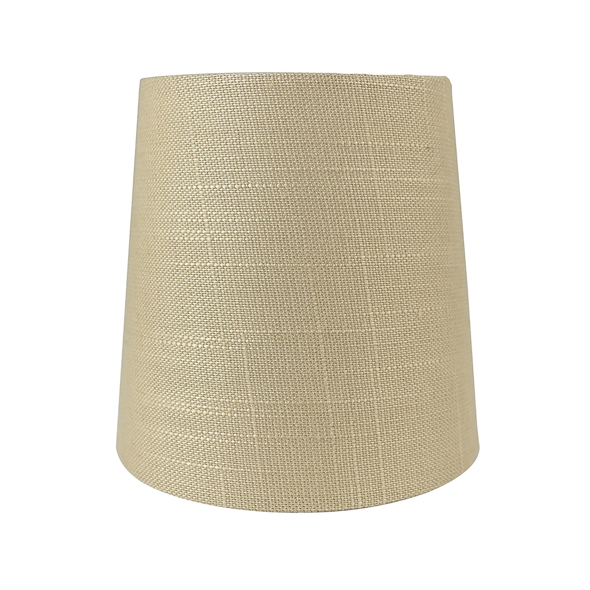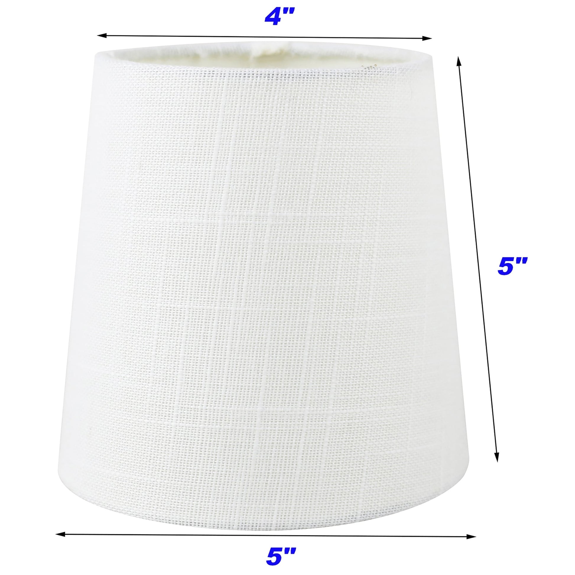 SHADES DIMENSIONS: 4' top diameter, 5' bottom diameter, and 5' height.FABRIC: Linen. HardbackFITTER: Clip-on fitter designed to fit teardrop or torpedo candelabra bulbs. NOT for standard regular light bulbs.SUGGESTED MAXIMUM WATTAGE: 40 watts.
