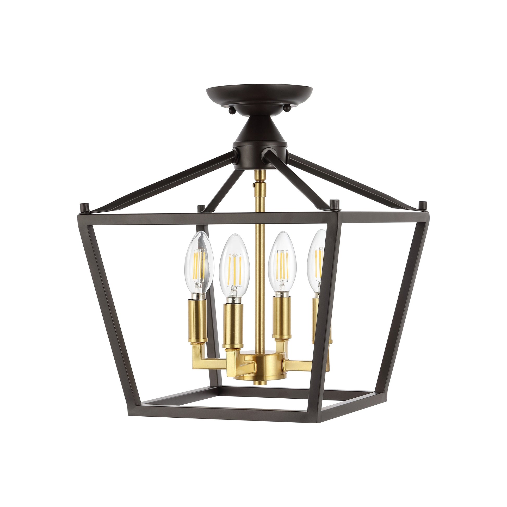 Milton Mini Lantern 4-Light Iron Modern Farmhouse LED Flush Mount, by JONATHAN Y