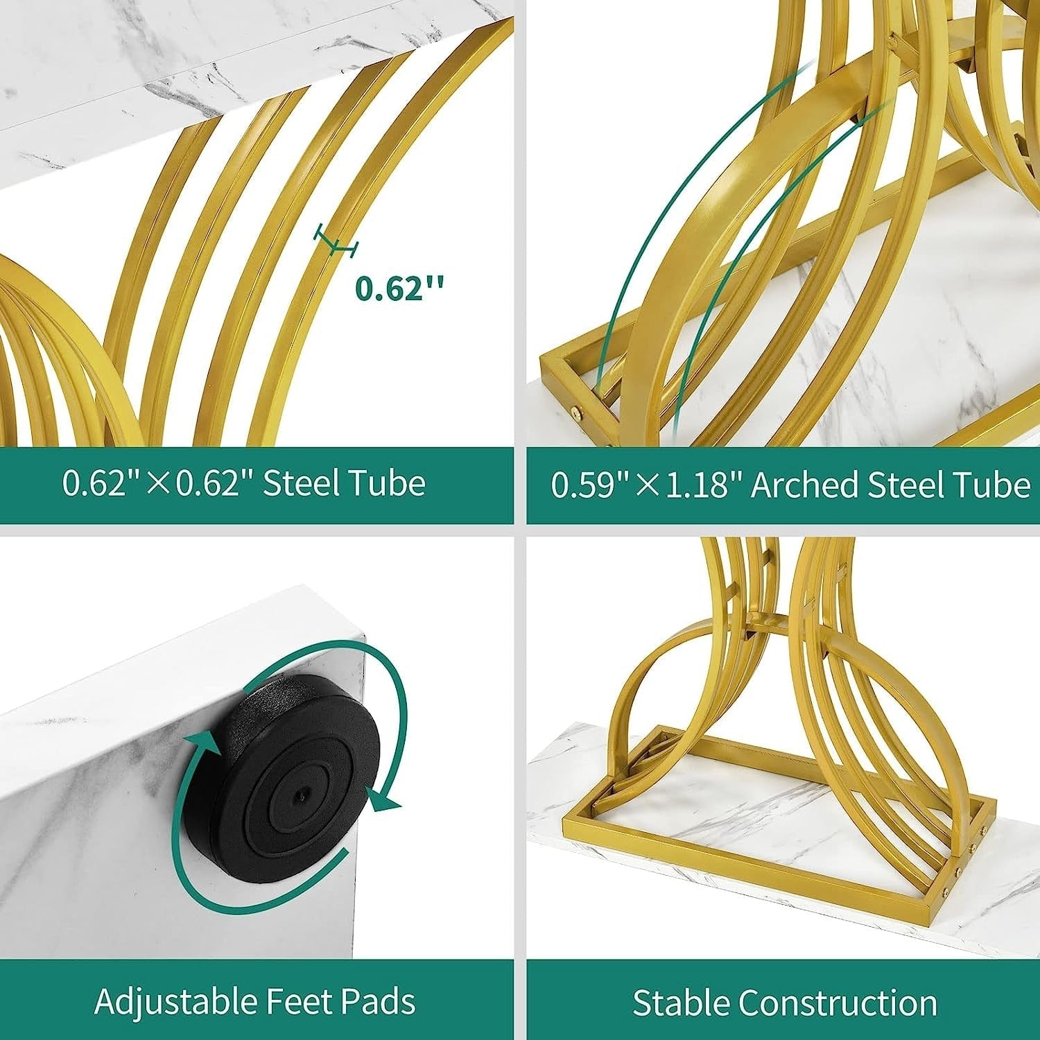 Modern Gold Console Sofa Table with Marbling Top for Entryway Hallway