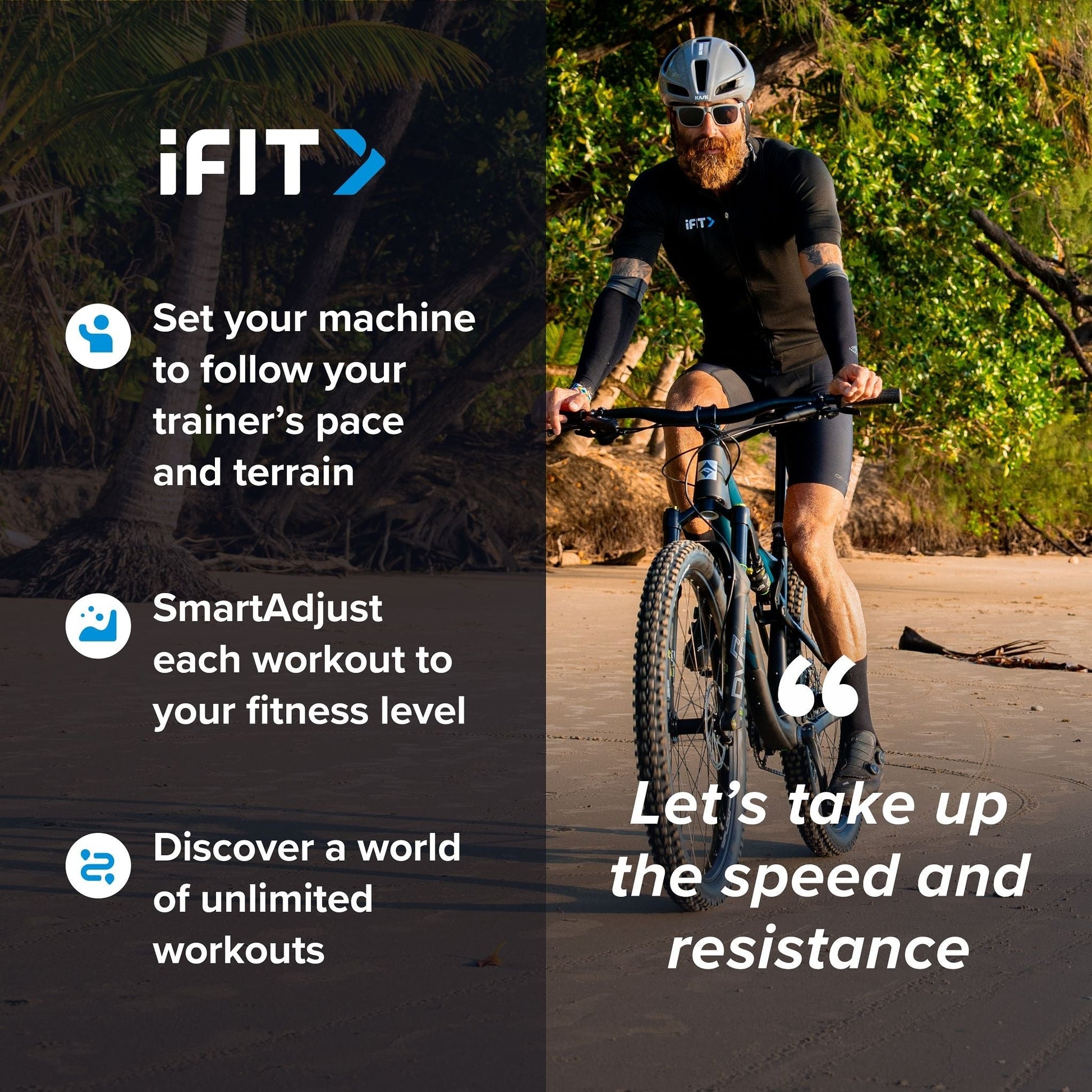 The Commercial VU 29 exercise bike will deliver workouts personalized to you, no matter your fitness level. Enjoy thousands of iFIT's expert-led, outdoor workouts in beautiful road and trail locations around the world. SmartAdjust™ will automatically change your 24 digital resistance levels based on your workout history and performance. Ride comfortably and embrace longer workout rides with an oversized cushion seat. *iFIT experience shown. Internet and Wi-Fi required. iFIT Membership auto-renews for $39/mo plus tax unless canceled in advance. Cancel at any time.