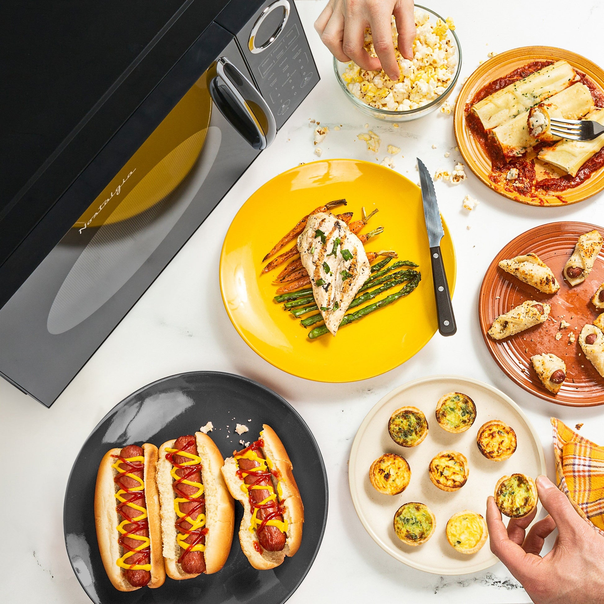 - AUTOMATIC PROGRAMS: Utilize the auto-cook microwave programs to cook your favorite foods easily and quickly: Popcorn, Potato, Pizza, Frozen Dinner, Beverage, and Reheat.