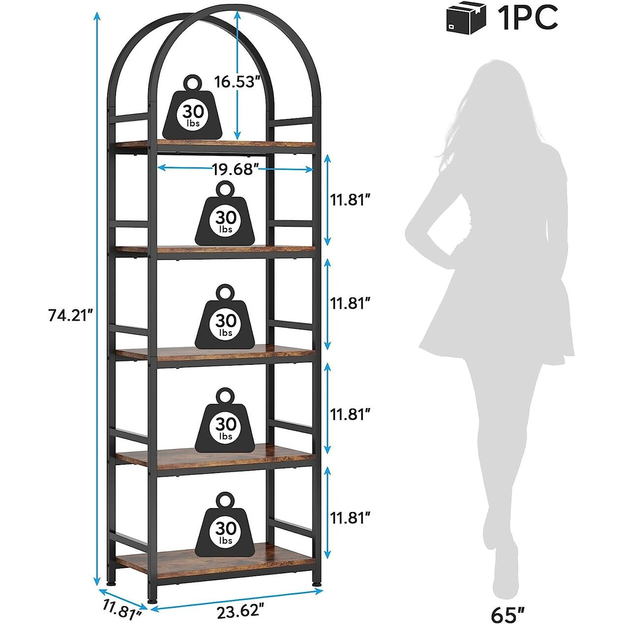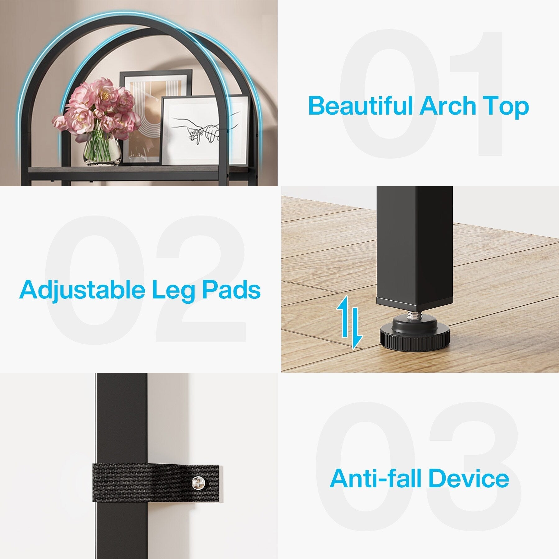 - The 4-tier arched bookcase offers ample storage space suitable for books, framed photos, potted plants, awards, etc.