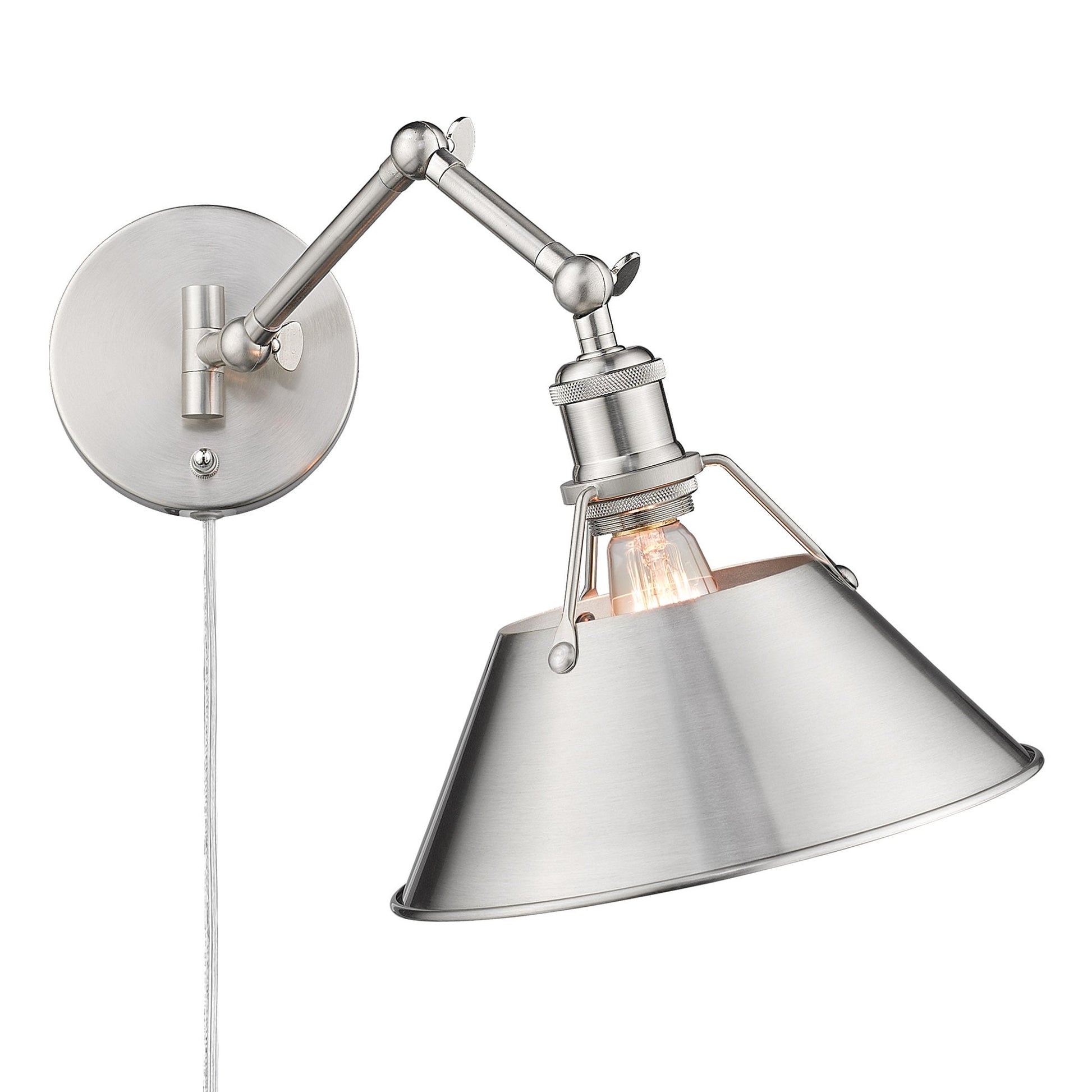 The Orwell AB 1 Light Articulating Wall Sconce is a versatile addition to any room. This industrial-style fixture is part of an extensive collection that shines with refined details. The partial shades protect the eyes from hot spots while the open tops showcase the sockets and bulbs. The design allows light and heat to escape, creating both task and ambient lighting. Complete the vintage look with Edison bulbs. The articulating arm can be conveniently locked in place with thumbscrews for style and function. Choose between plug-in or hardwire installation.