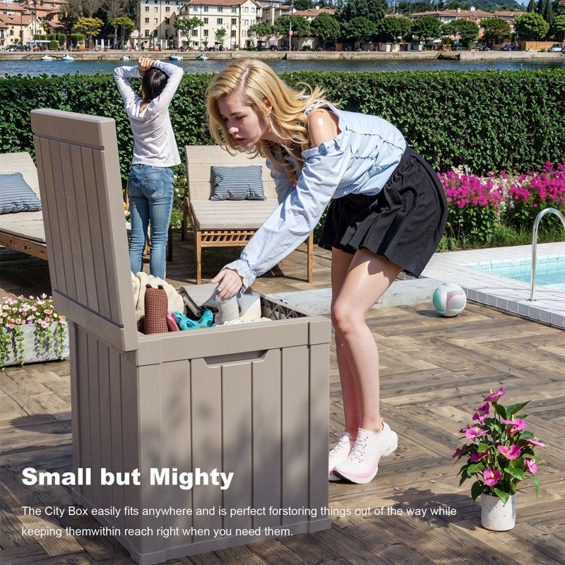 The deck box is perfect for stashing away outdoor accessories on your patio or cold weather gear inside your laundry room or garage. Featuring weather resistant plastic construction that allows for year-round use and easy maintenance-along to complement your existing decor-this unit packs style and convenience into a small footprint. Regardless of your unique needs, this stylish small deck box will make a great addition to your home!