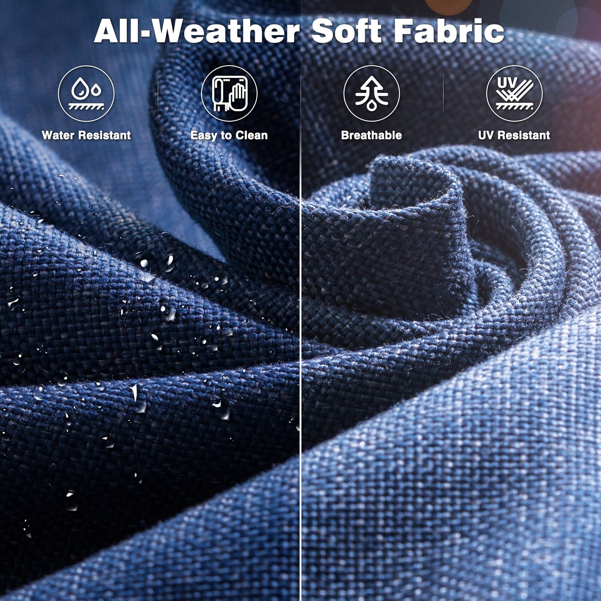 - Thick sponge polyester cushions with washable, water-repellent covers