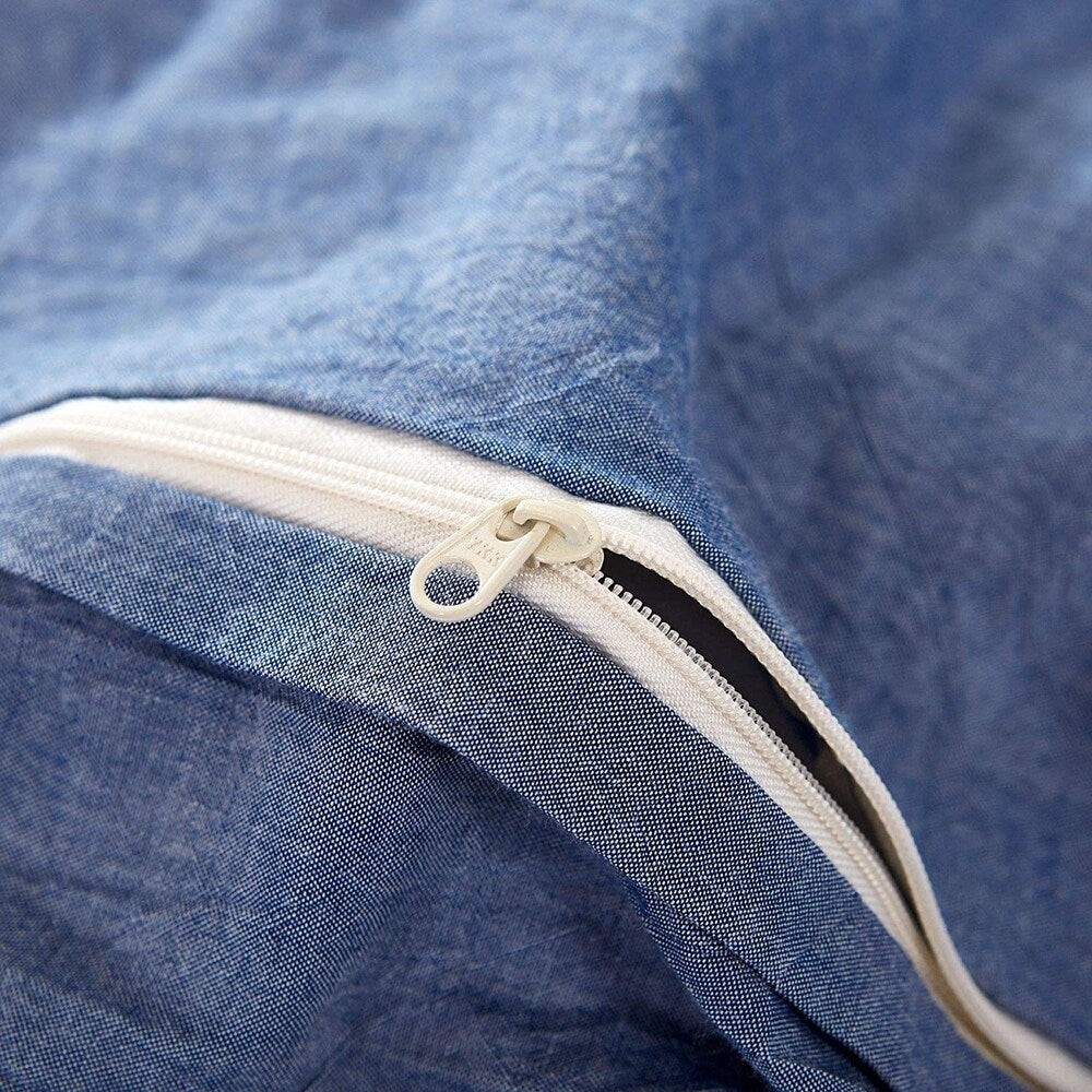 Experience the ultimate in comfort and style with our PomPom Cotton Reversible Duvet Cover Set. Made from 100% washed cotton with a soft chambray shirt texture, this duvet cover is not only breathable but also hypoallergenic and machine washable. The luxurious yet simple style of the duvet cover boasts a chic natural wrinkles textured look that adds a pop of color to your room. Complete with coordinating pillow shams, this duvet cover set will provide you with unexpected comfort and the best sleep ever.