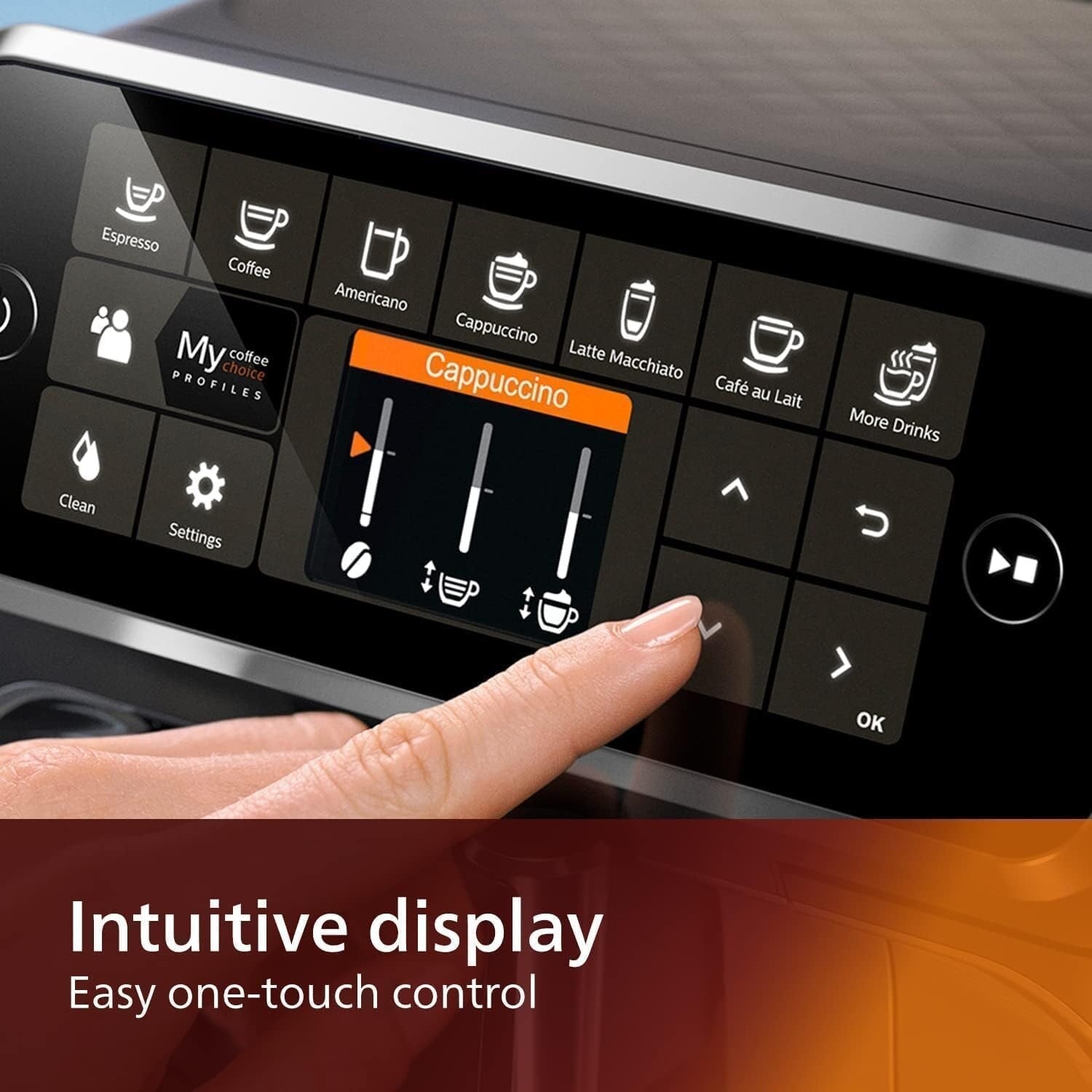 Premium Espresso Machine, 12 Hot/Iced Coffees, LatteGo System, Ceramic Grinder, Black Chrome