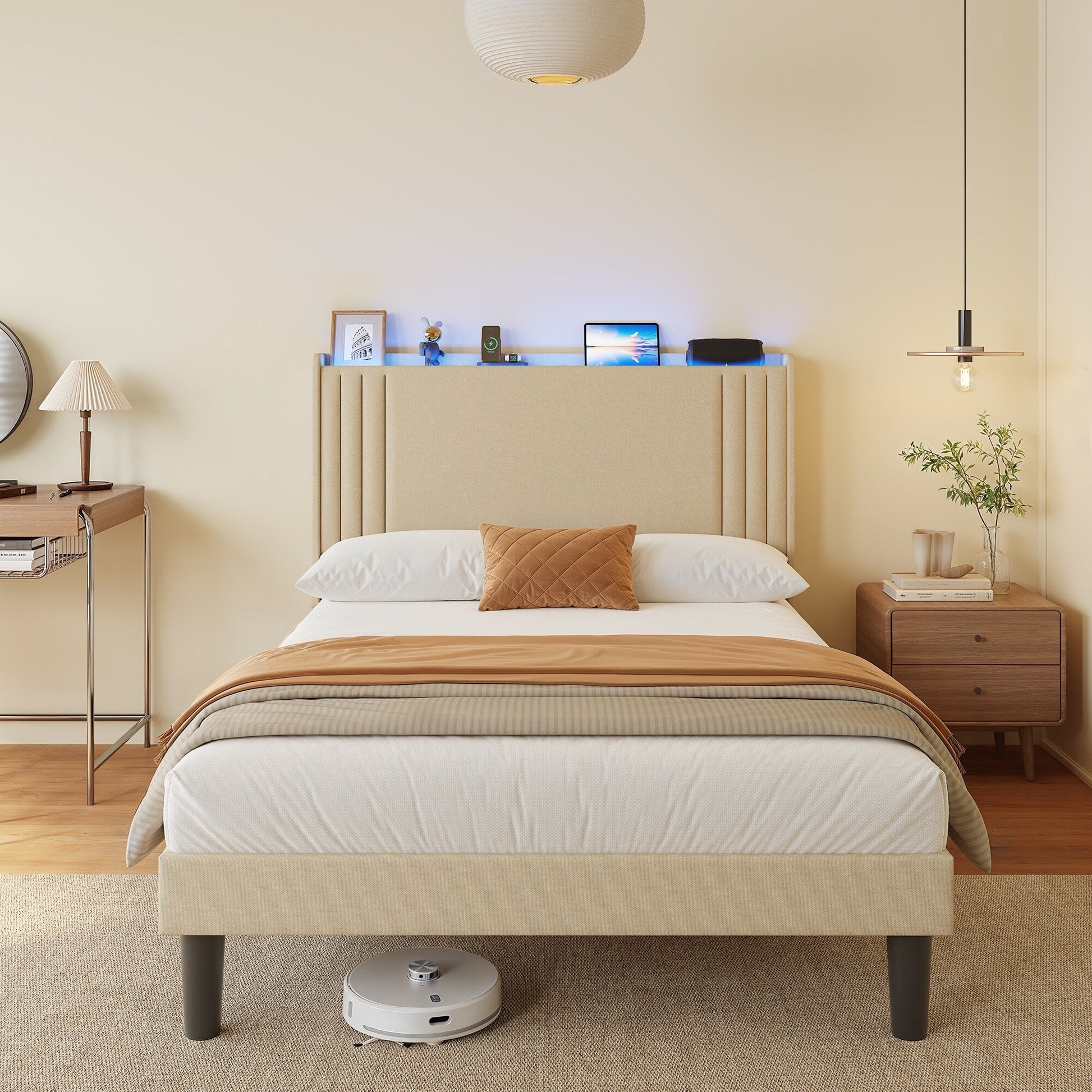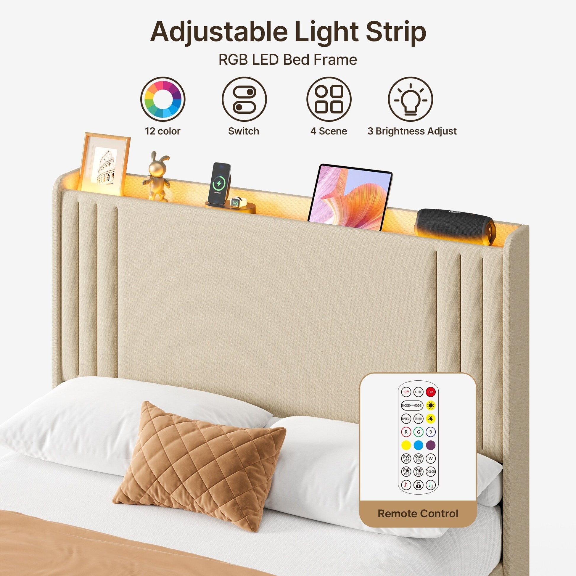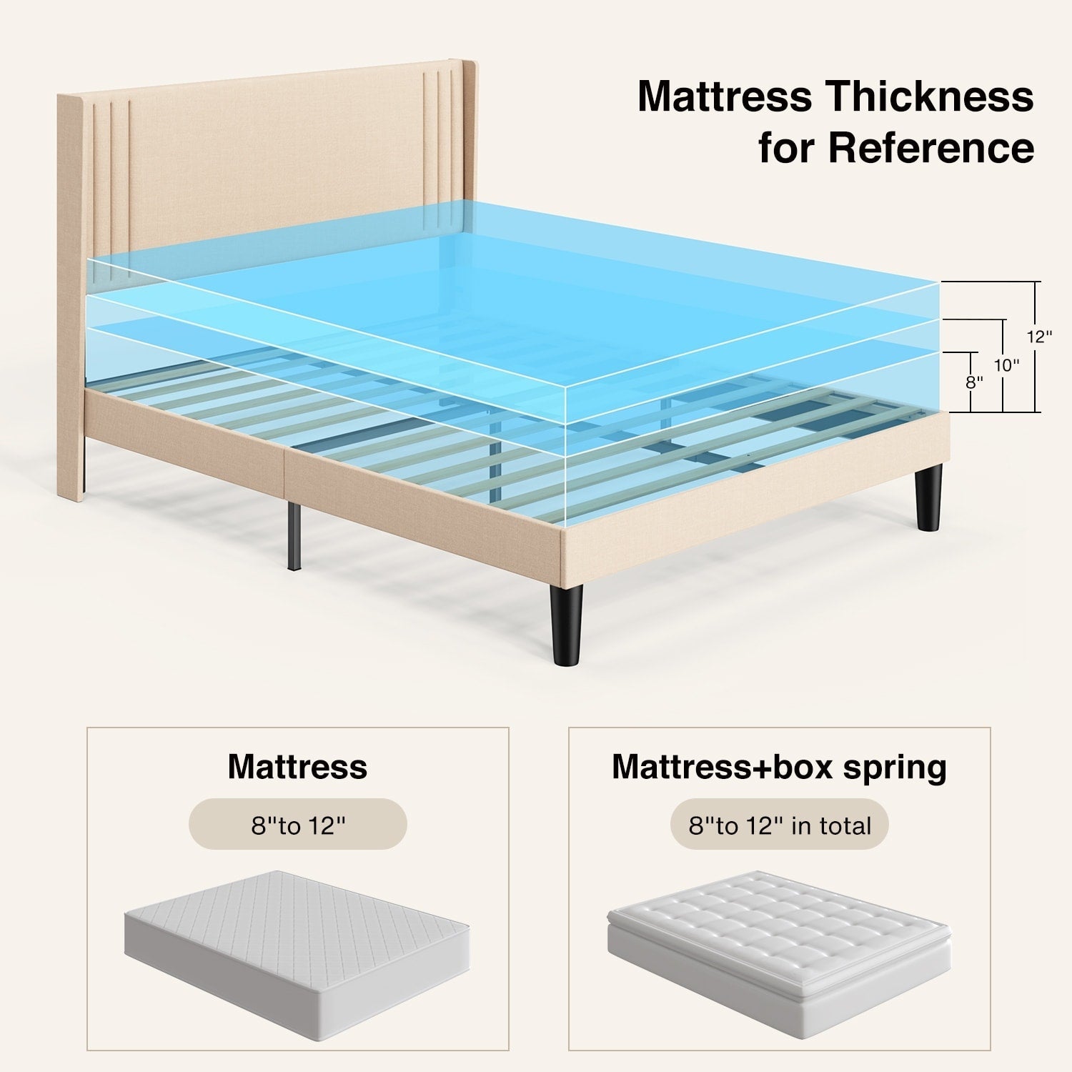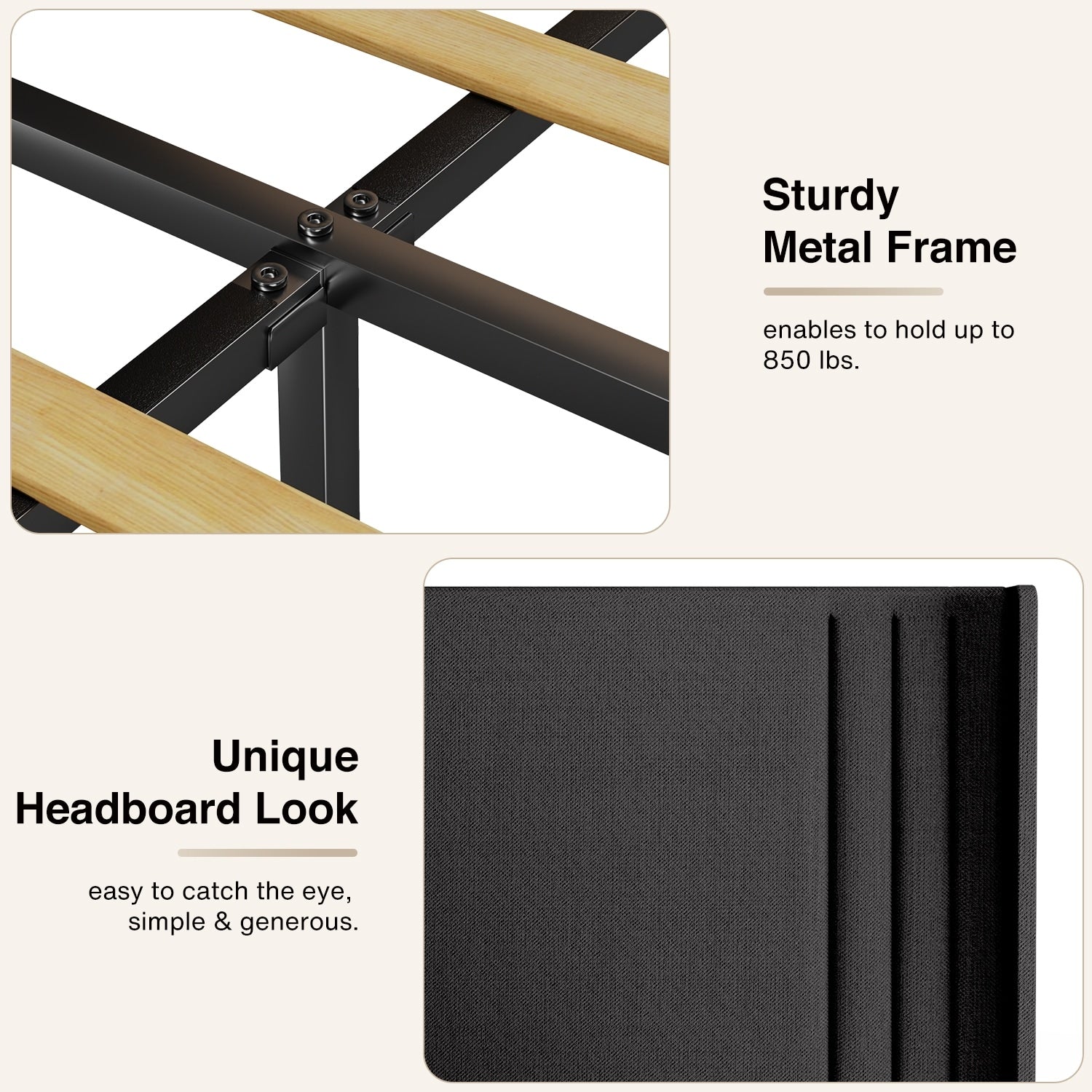 - Durable Construction: Built with a solid frame, this upholstered bed offers reliable support for your mattress without the need for a box spring. Its sturdy construction ensures long-lasting durability and comfort.