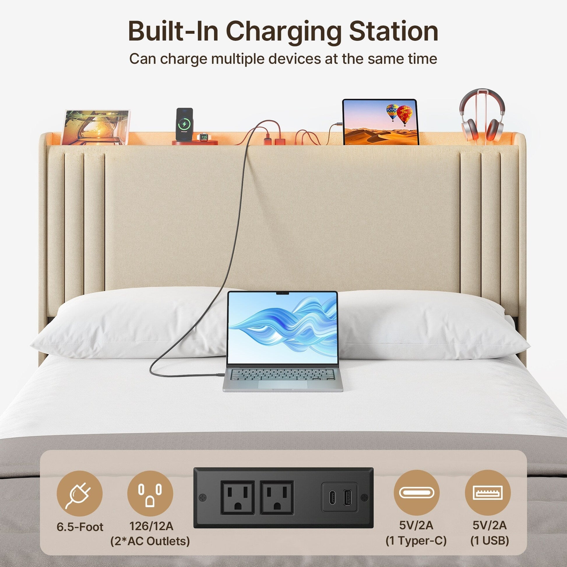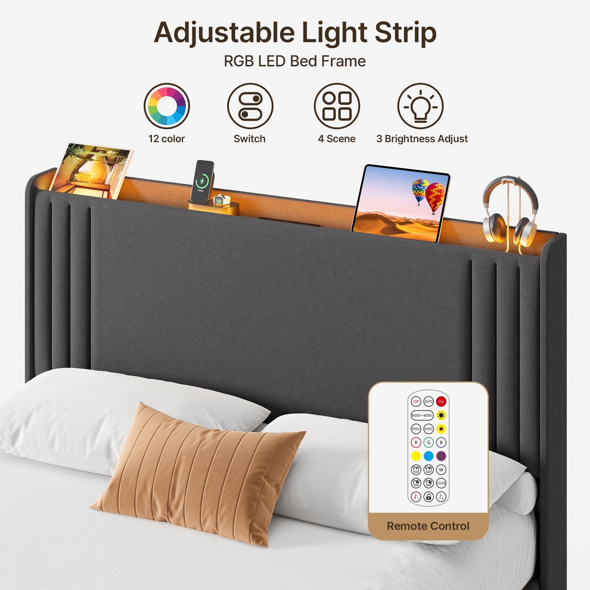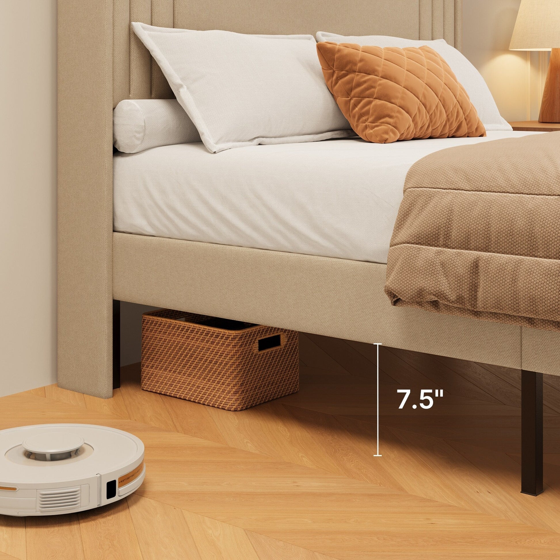- Wingback Headboard for Added Comfort: The plush, wingback headboard not only enhances the bed's stylish look but also provides great support for sitting up and relaxing. Perfect for reading, watching TV, or enjoying a quiet moment in bed.