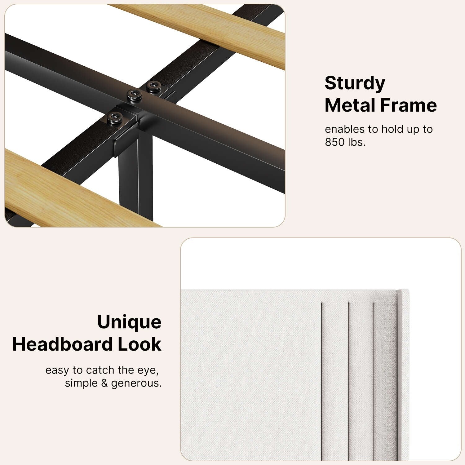 - Easy Assembly: This bed frame is simple to assemble with all tools and instructions included, so you can have it set up in no time and enjoy its comfort and beauty.