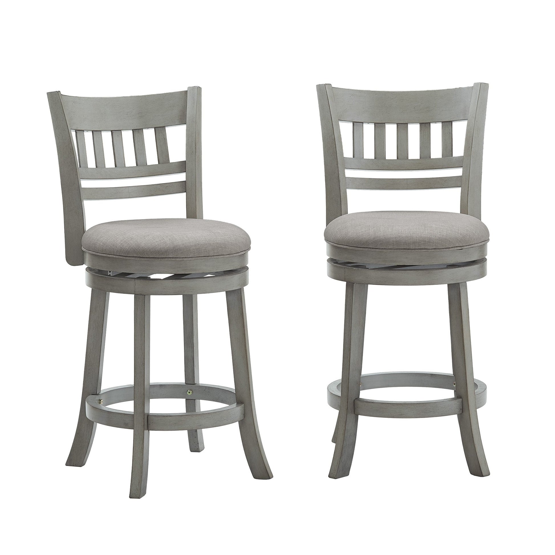 Constructed of durable rubberwood, this Lattice Back 24'H Swivel Counter Height Stool displays a beautiful, classic style and offers comfortable support for everyday dining. A rich, wood finish completes the frame, while a footrest and linen upholstered seat provide improved comfort for daily use. The swivel function of this barstool provides advanced mobility and makes it easy to have a casual conversation with friends and family during mealtime.
