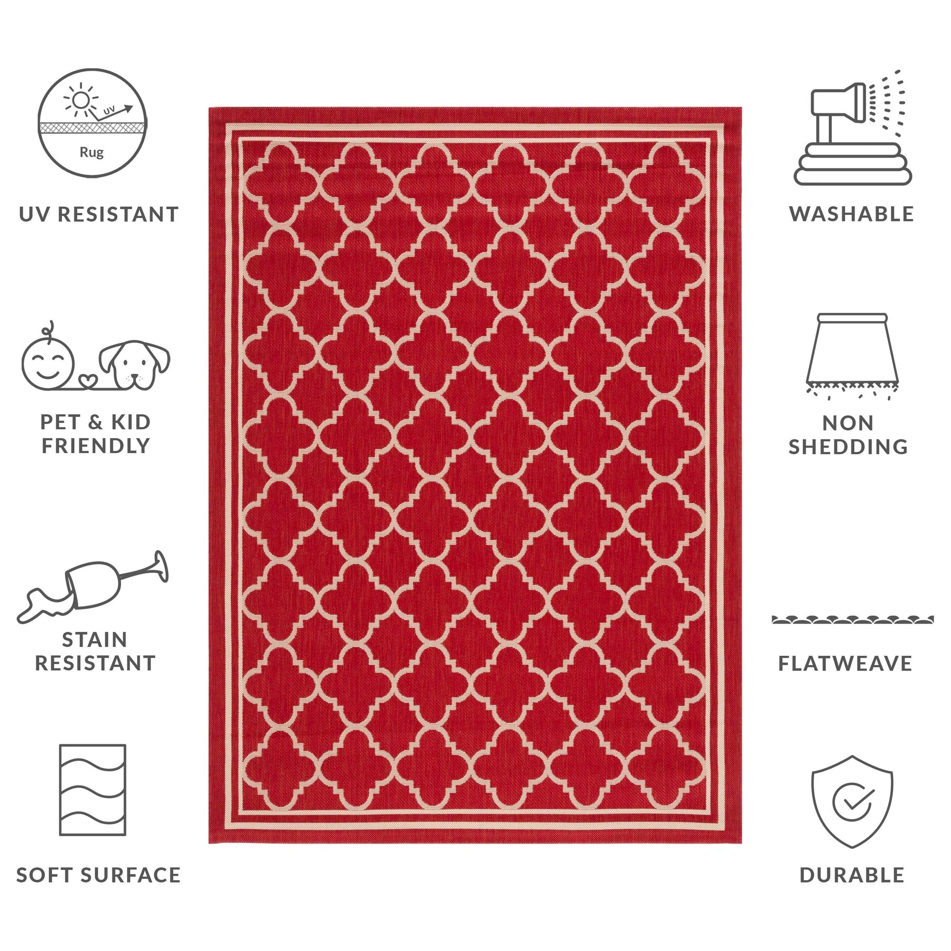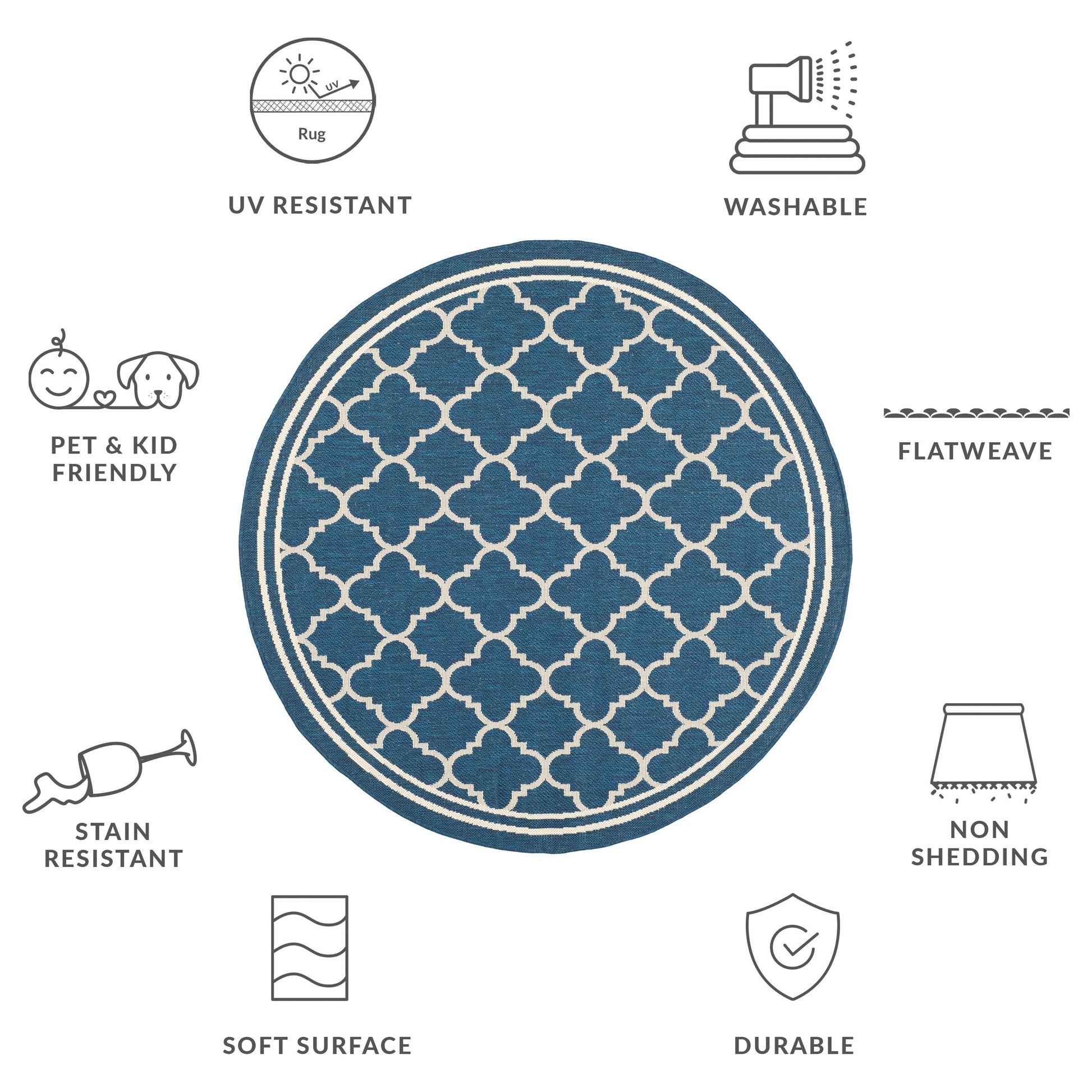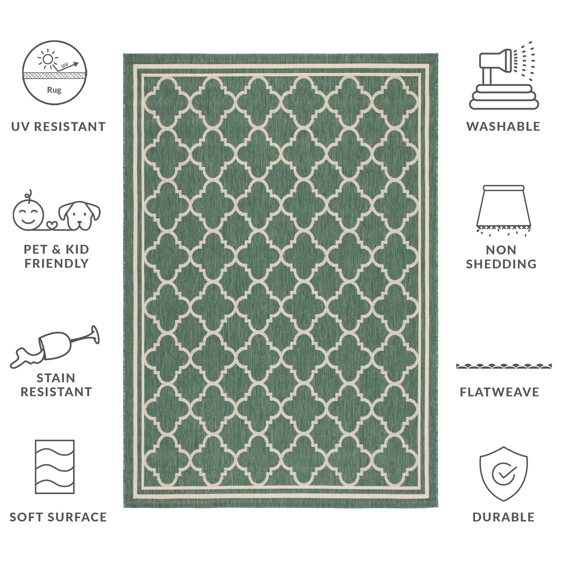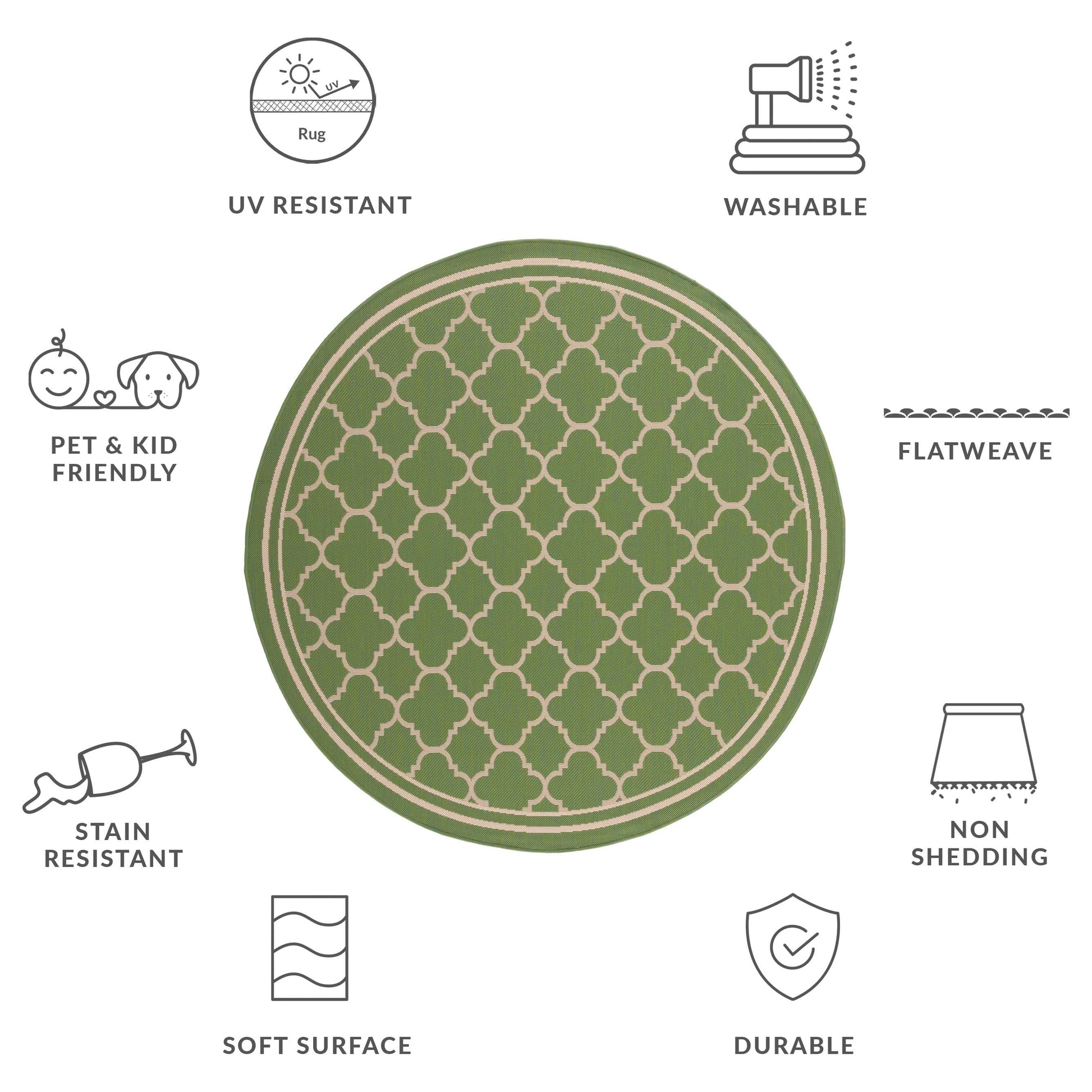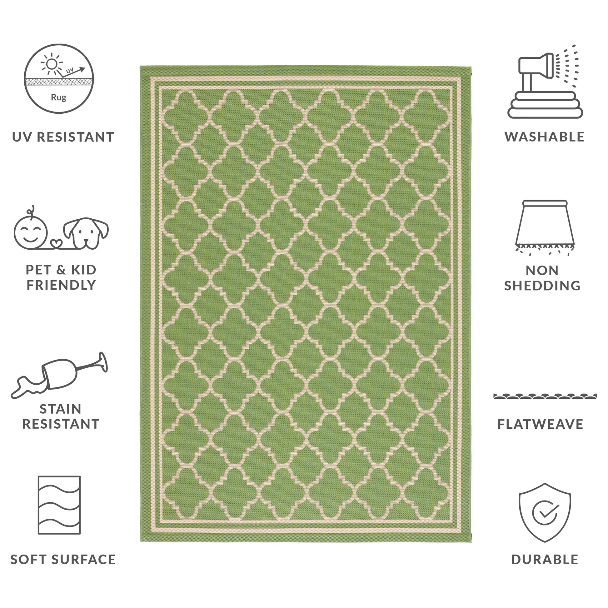Ideal for a range of outdoor and indoor settings like gardens, patios, decks, sunrooms, or pool areas, this chic rug from the Courtyard Collection is a functional enhancement to any living space. Designed to withstand the demands of pets and children, this low-maintenance rug is equally suitable for bustling areas such as mudrooms or kitchens. Elevating outdoor decor with fresh designs in trendy hues and patterns spanning from timeless to modern, this exquisite rug collection sets a new standard for outdoor styling. Rug sizes may vary slightly.