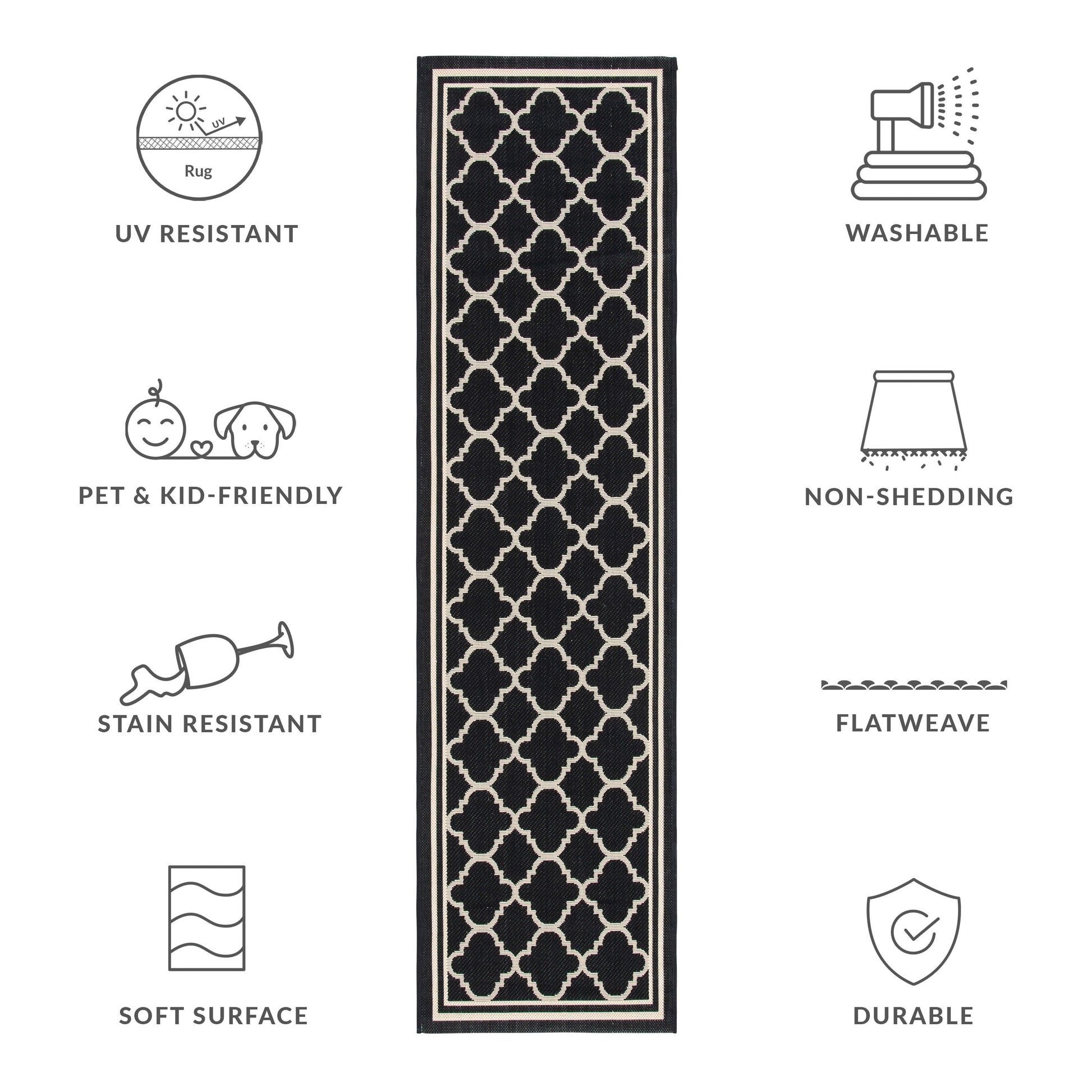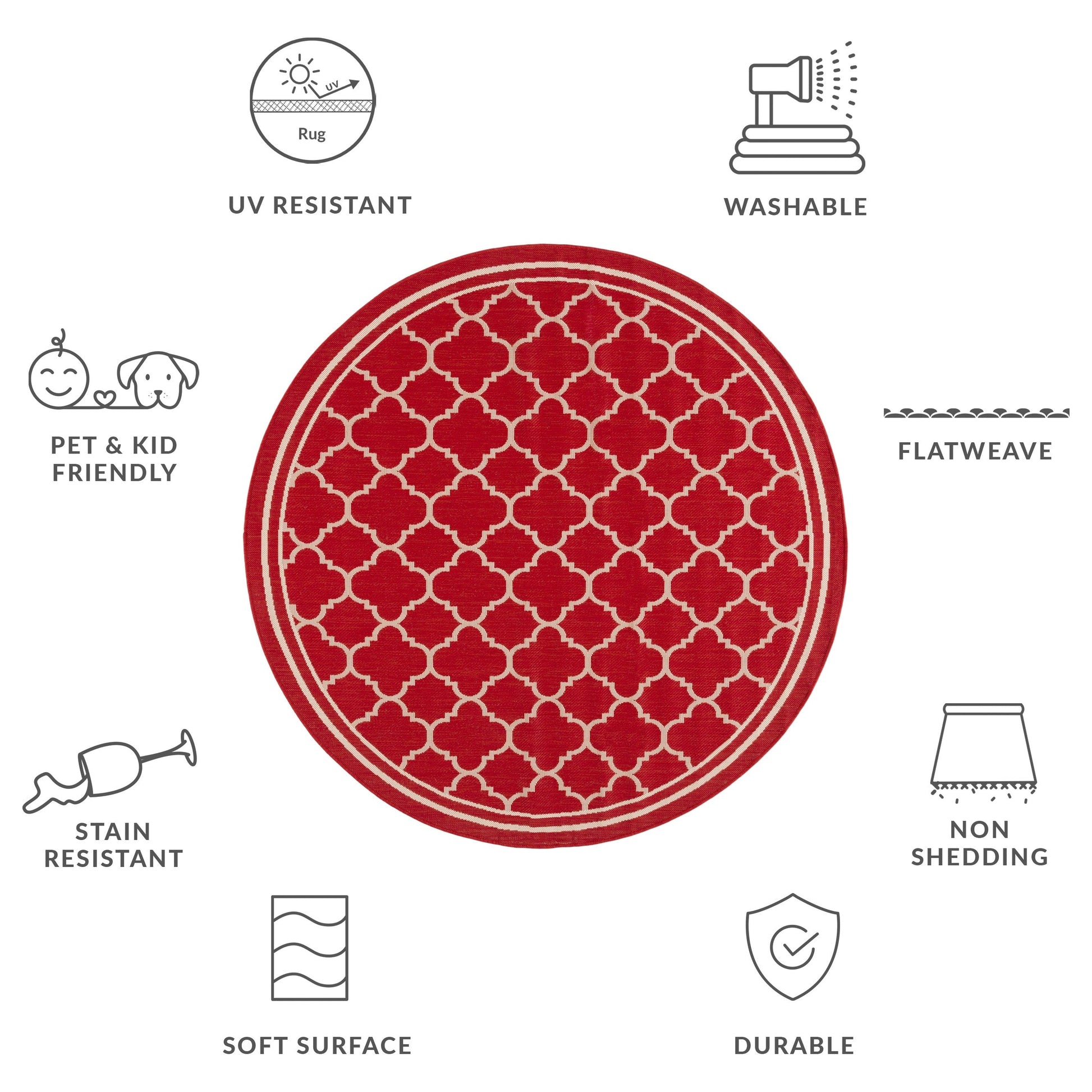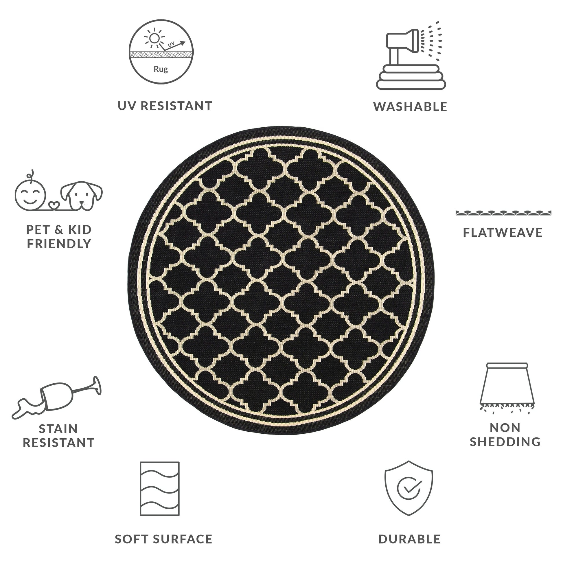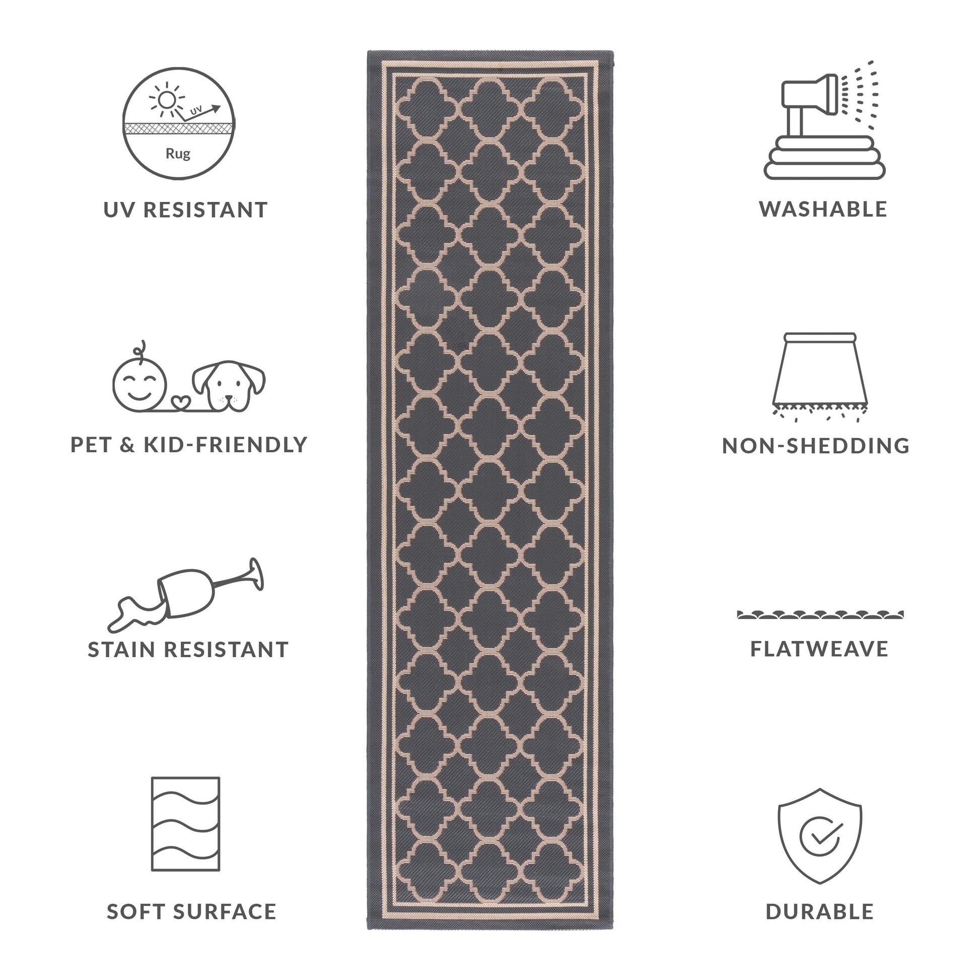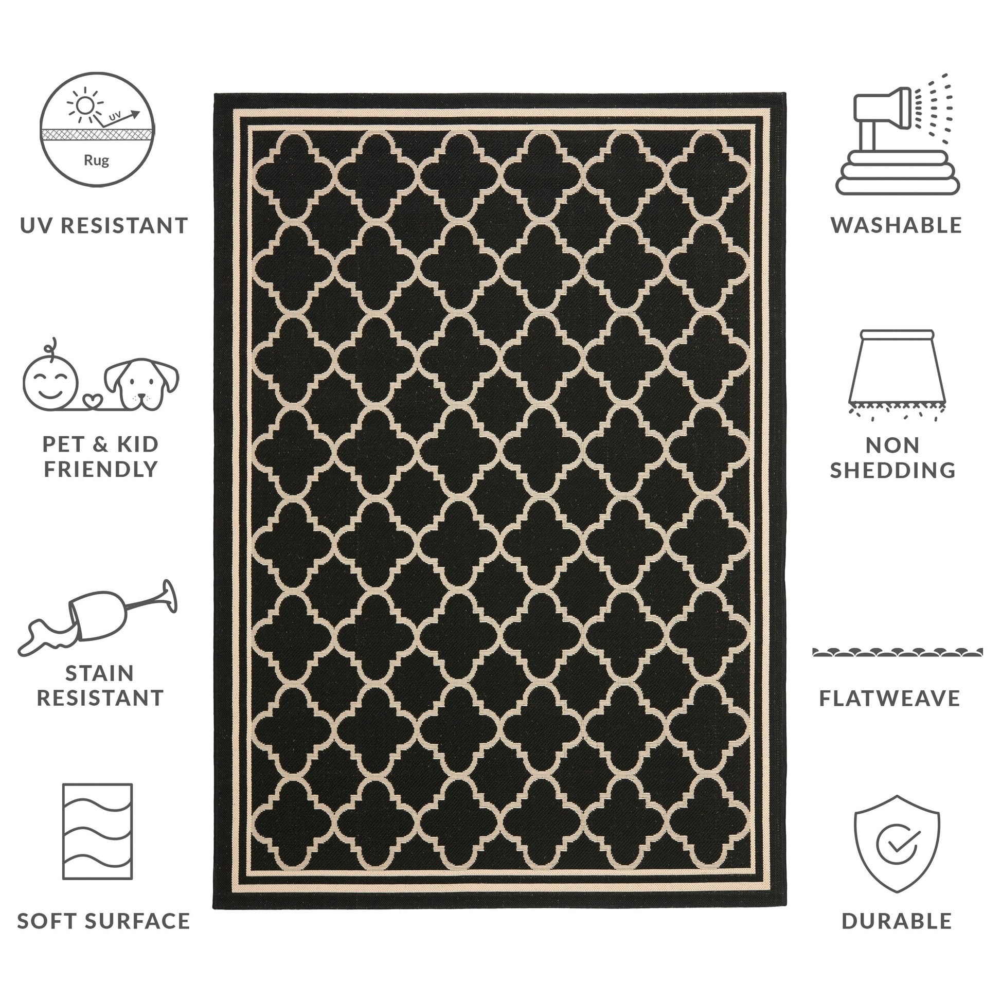 Ideal for a range of outdoor and indoor settings like gardens, patios, decks, sunrooms, or pool areas, this chic rug from the Courtyard Collection is a functional enhancement to any living space. Designed to withstand the demands of pets and children, this low-maintenance rug is equally suitable for bustling areas such as mudrooms or kitchens. Elevating outdoor decor with fresh designs in trendy hues and patterns spanning from timeless to modern, this exquisite rug collection sets a new standard for outdoor styling. Rug sizes may vary slightly.
