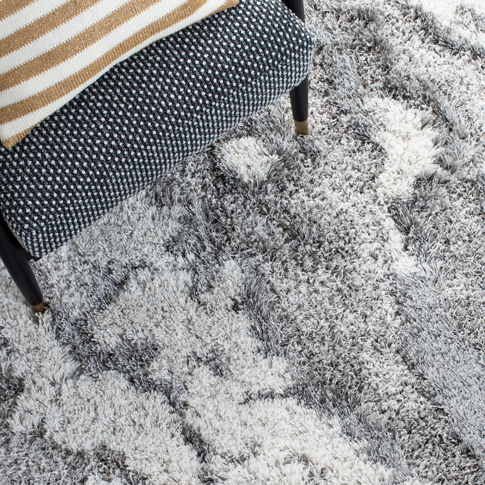 Experience the beauty of nature inside your home with the SAFAVIEH Horizon Shag Mukades Rug. This stunning rug features an abstract pattern in calming neutral colors, inspired by the earth's surface and sky. With a luxurious 2.6-inch pile thickness, it provides a plush feeling underfoot and creates flowing dimension. Crafted from durable fibers that are kid and pet-friendly, it can withstand high-traffic areas without shedding.