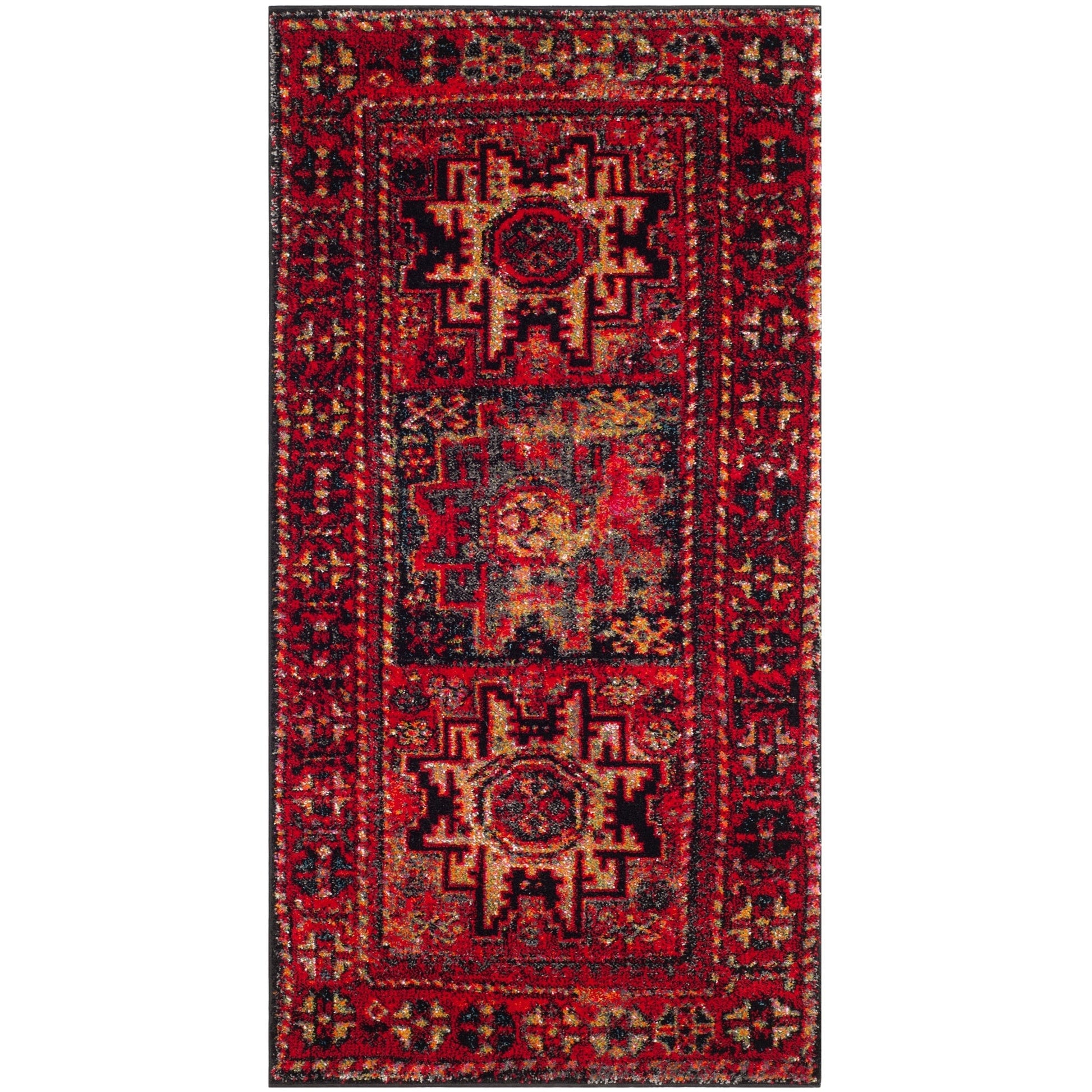 Elevate your home's decor with the SAFAVIEH Vintage Hamadan Gody Oriental Distressed Rug. Its classic motifs and distinctive hues are finished in an antique patina, adding a touch of vintage charm to any room. Made with enhanced synthetic fibers, this rug is stain-resistant and non-shedding, making it perfect for high-traffic areas. It has a medium pile height of 0.6-inches for a soft and comfortable feel underfoot. From the living room to the bedroom, this rug is a stylish addition to any space..