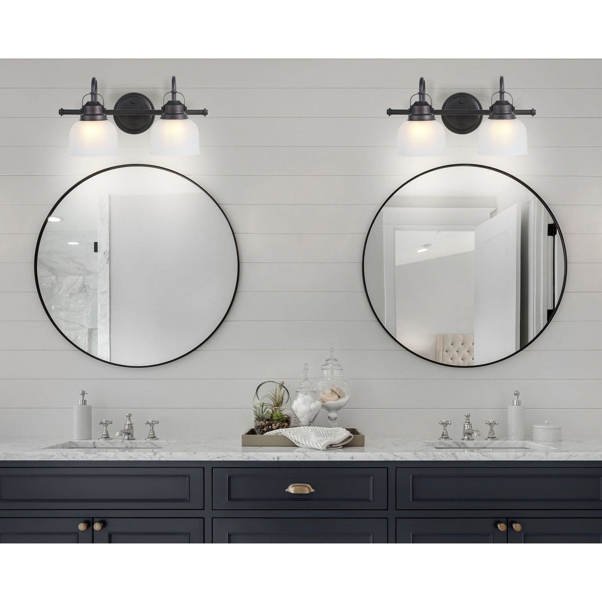 With a hint of texture on the glass shade to blur the glare of the bulb, this elegant sconce is perfect for a bathroom or vanity setting that calls for bright, but not harsh, light. On either side of a mirror, you'll find this stylish piece the perfect addition to your morning makeup routine, as it is compatible with a variety of bulbs. Also versatile within any style of decor, we particularly love seeing these in bathrooms and kitchens, where the arch of the light's arm is reminiscent of the curve of a beautiful faucet.