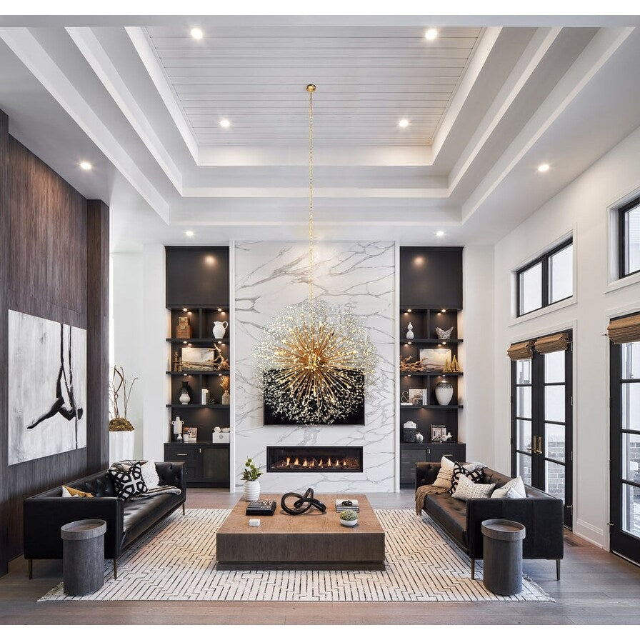 unique style chandelier is composed of multiple crystals and features and the crystal is shiny, never to chip, fade, or tarnish. crystal home decor can give your room the glam touch it needed and make it easy to pair with any of your existing decor. The diamond starry design gives a beautiful and luxurious visual enjoyment, the quiet stars flash with a bright light, shaped like a glowing dandelion and firework. When the lighting hits the crystal beads, they cast hundreds of rainbow prisms in the air