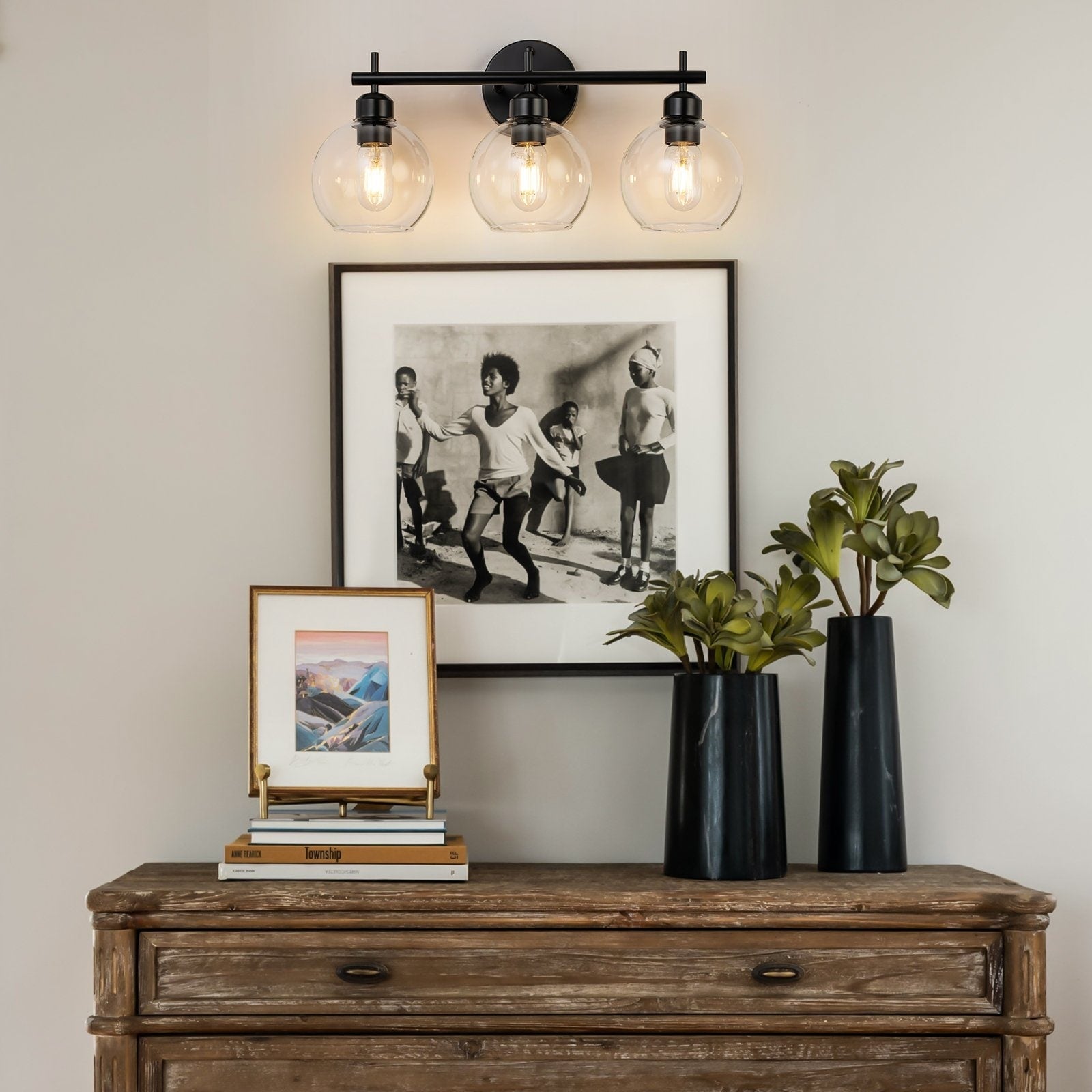 Elevate your bathroom's ambiance with the contemporary charm of the Starsky 3/4 Lights Modern Dimmable Bathroom Vanity Light. Designed with a sleek globe glass shade and available in black, gold, and black gold finishes, this vanity light brings sophistication to any bathroom decor. With its dimmable feature, you can effortlessly adjust the brightness to suit your preferences, creating the perfect atmosphere for relaxation or grooming. Compatible with E26 bulbs, this vanity light offers versatility and easy installation, while its circular backplate adds a touch of elegance to the overall design.