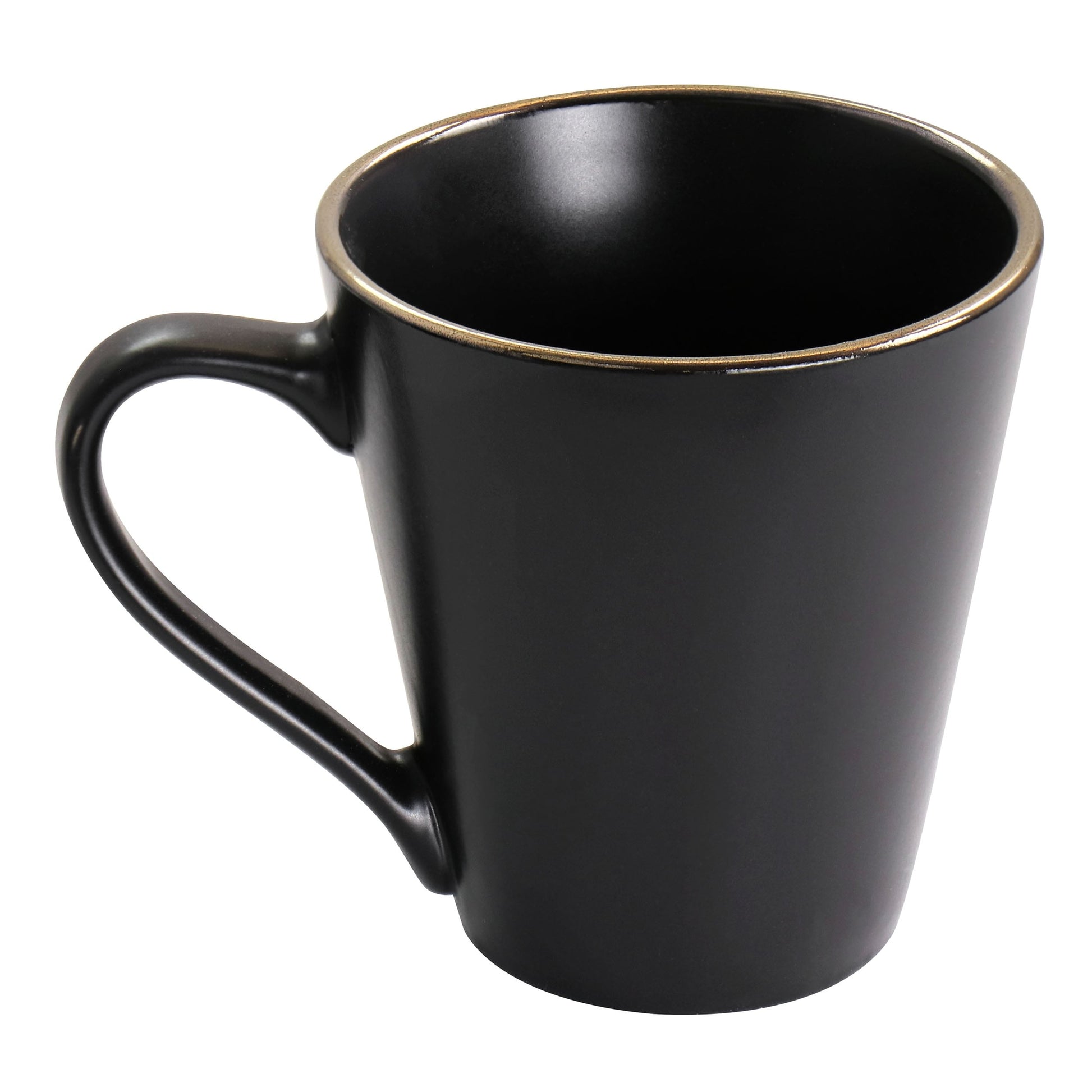 Stoneware Dinnerware 16 Piece Set in Black with Gold Rim
