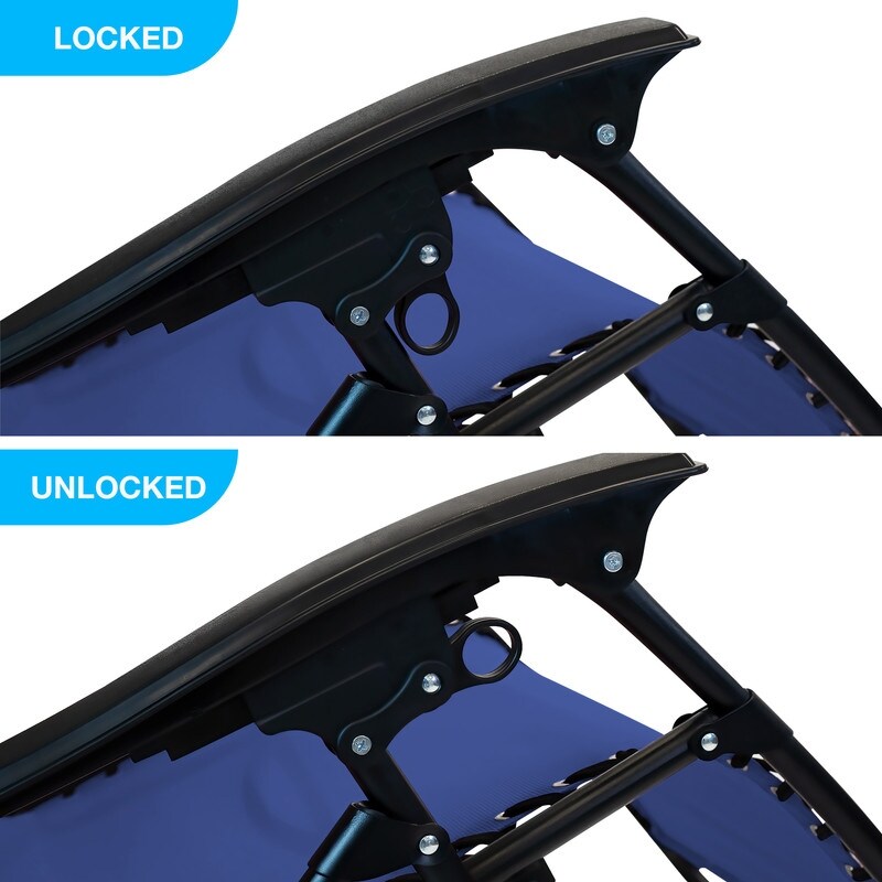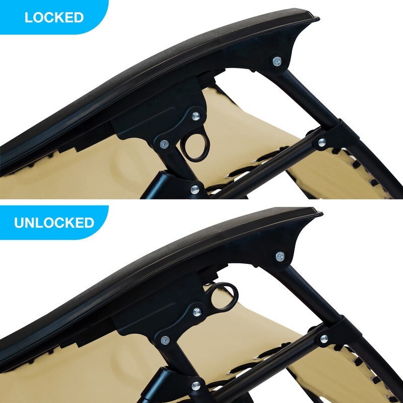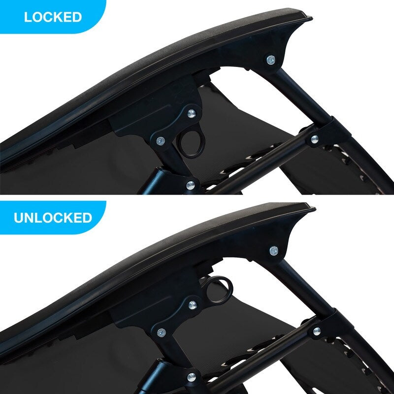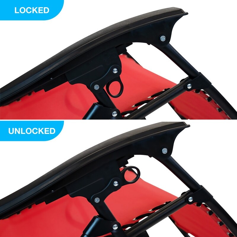 Crafted with durable outdoor-grade fabric and a black powder-coated steel frame, this chair is built to withstand the elements and last for years to come. Plus, with its upgraded locking system and impressive 300lb weight capacity, you can relax with complete peace of mind.