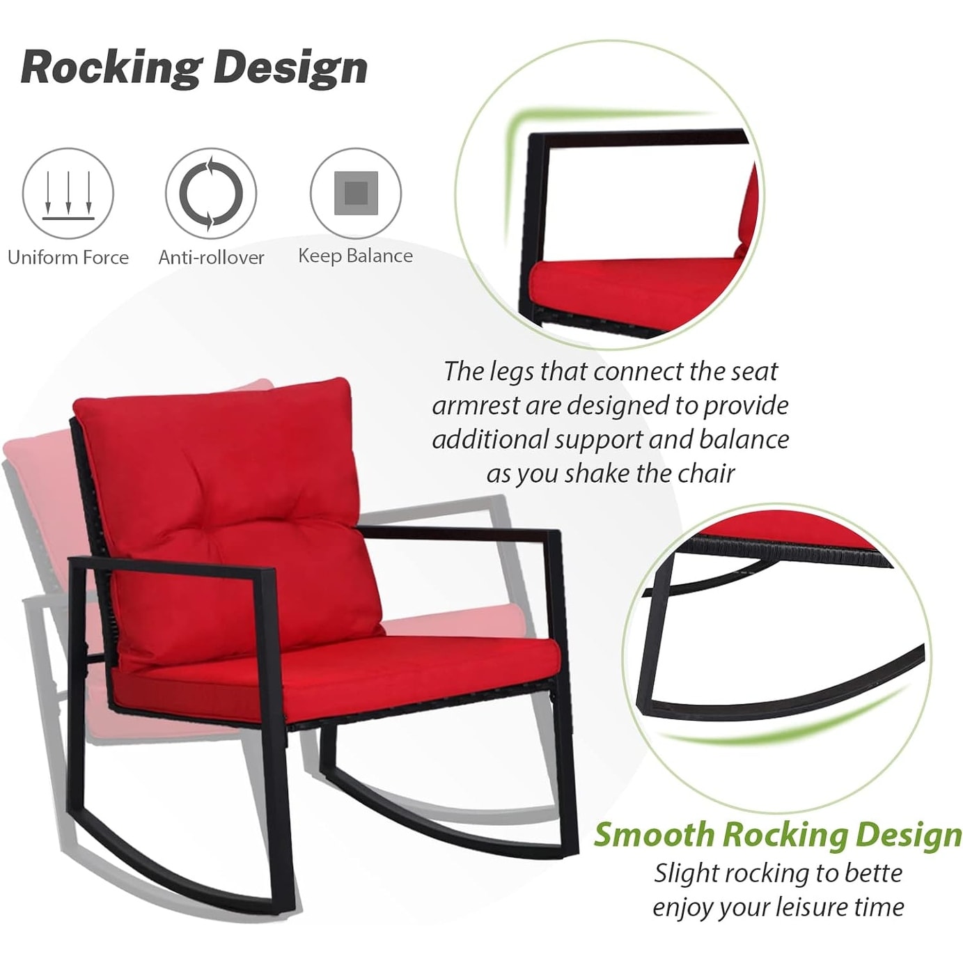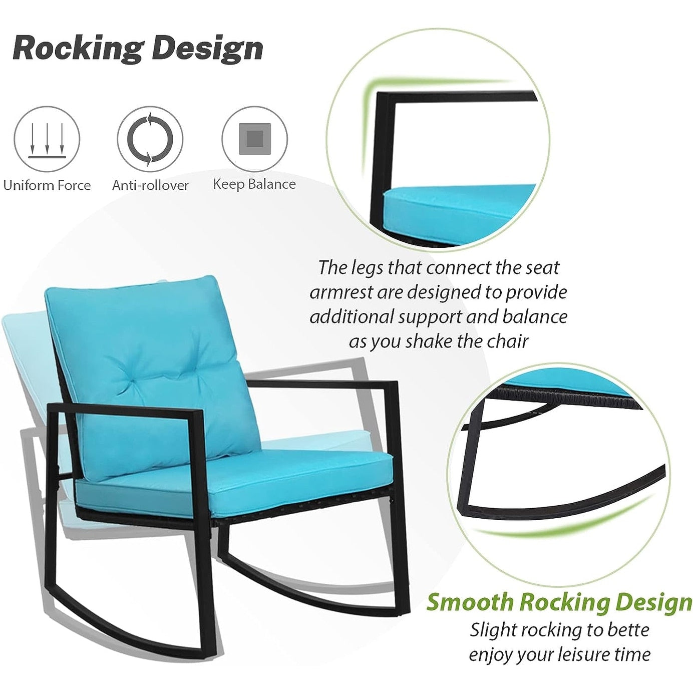 Relax in style with the SUNCROWN Outdoor 3-piece Rocking Wicker Bistro Set. This durable set includes two cushioned rocking chairs and a square coffee table, all crafted with an iron frame and woven PE wicker. The chairs feature polyester fabric cushions with sponge padding in various colors with zippered covers. With a contemporary design and black finish, this set complements any decor.