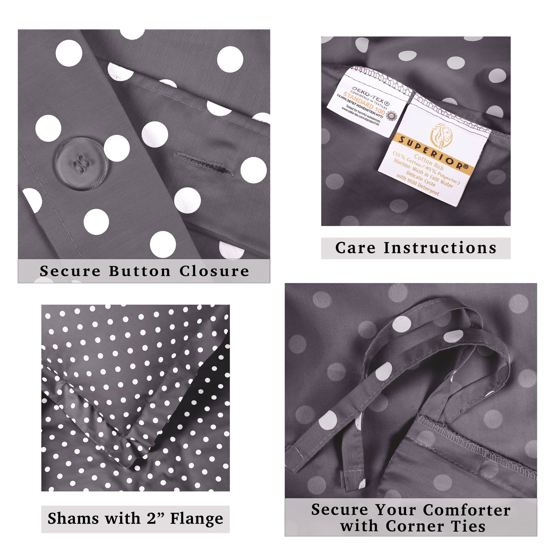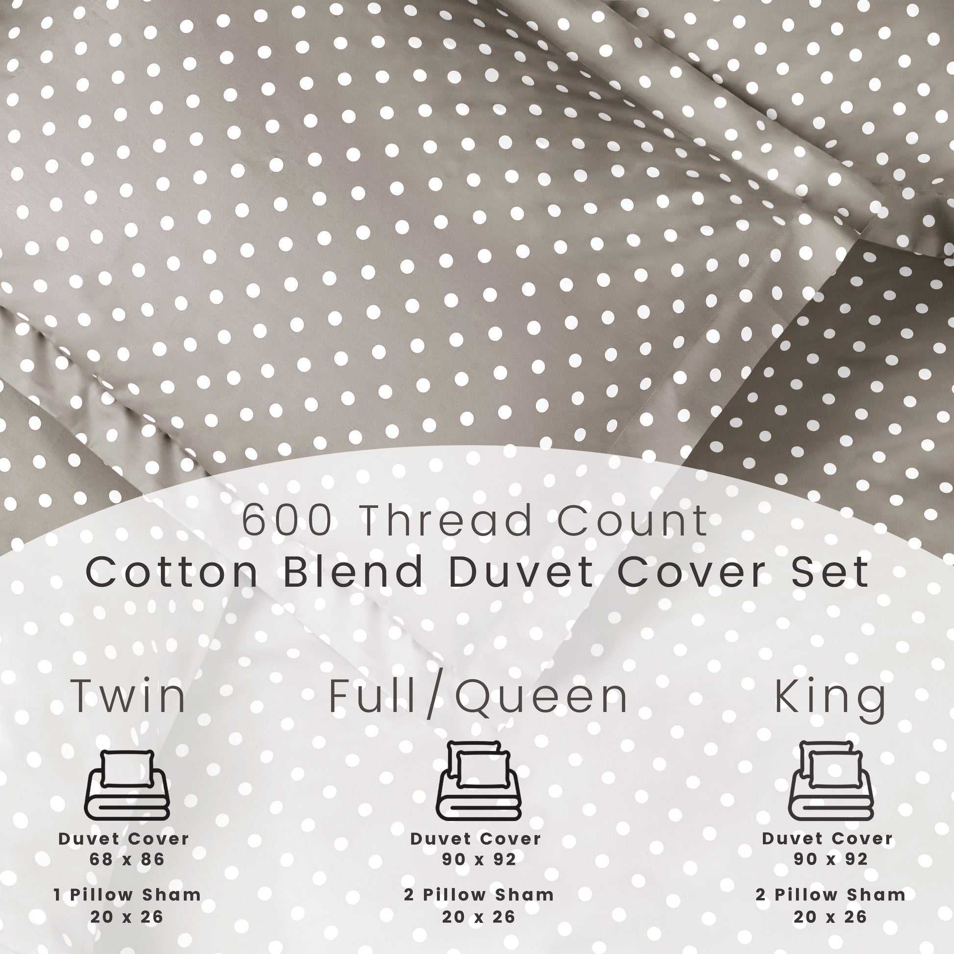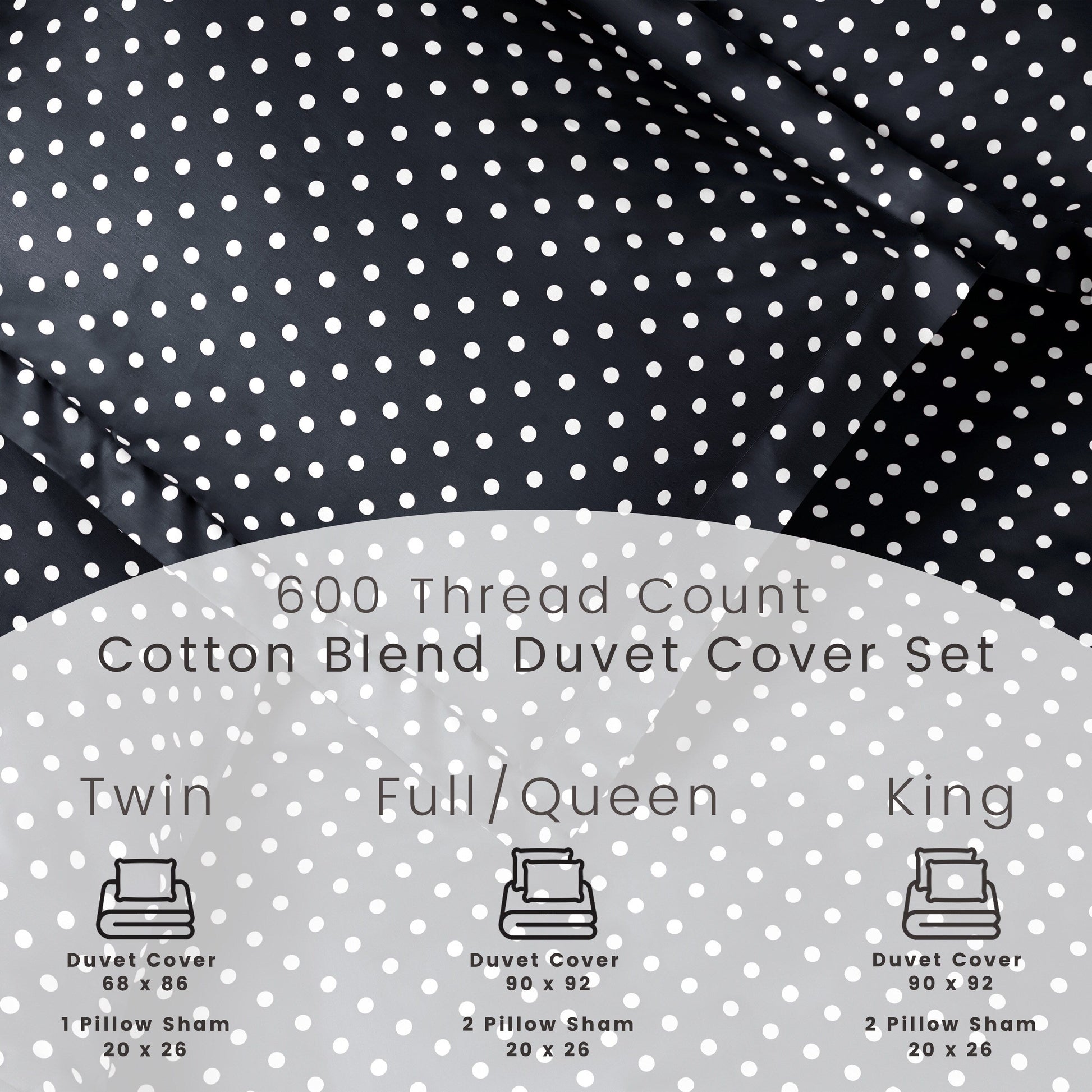 Superior Thread Count 600TC Polka Dot Cotton Blend Duvet Cover Set