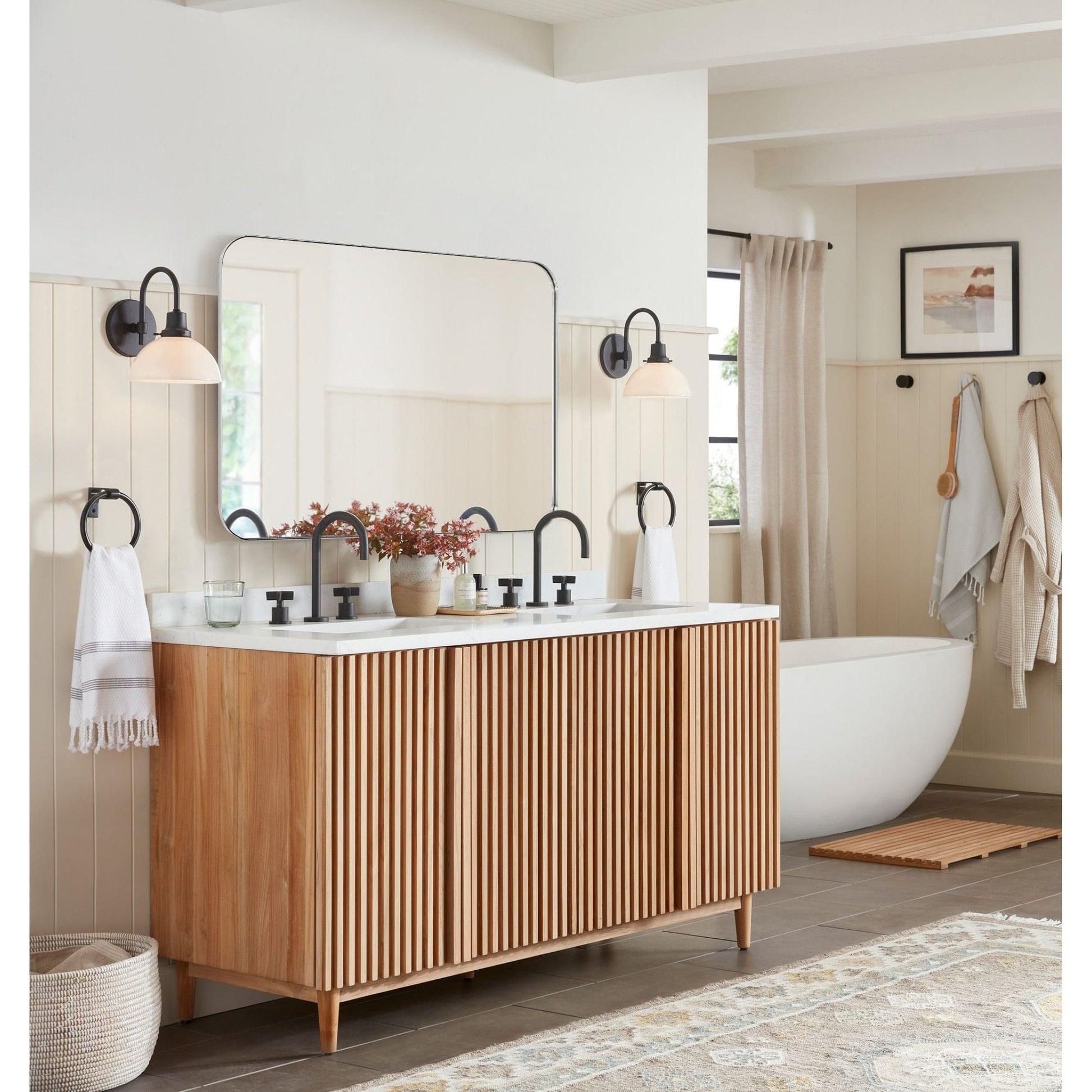 - Modern & Contemporary Rounded Rectangular Mirror: This classic rectangle bathroom vanity mirror is cleverly designed with a modern finish and timeless shape, which makes this mirror a great fit for any type of room, no matter if it's a rustic farmhouse or modern chic aesthetics.