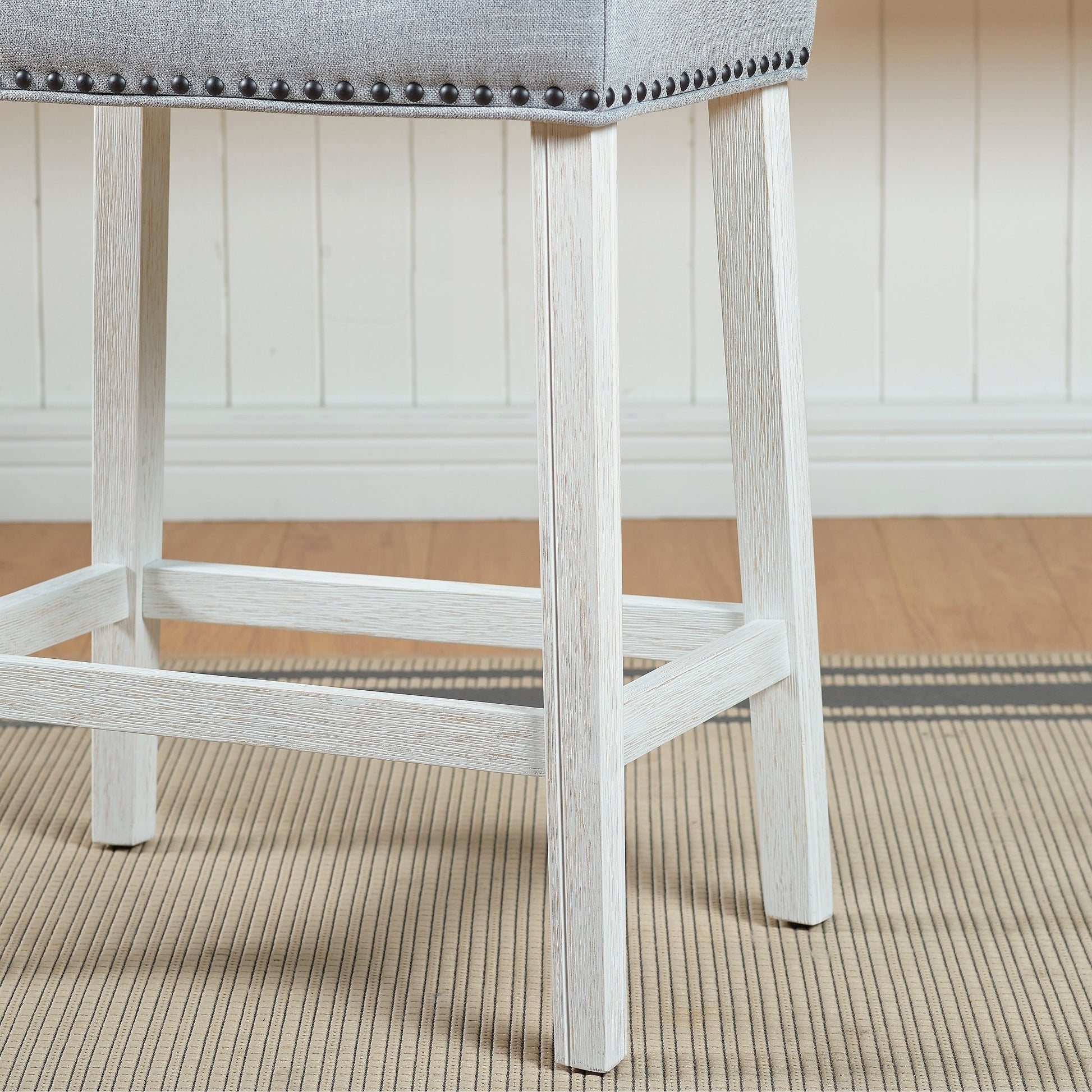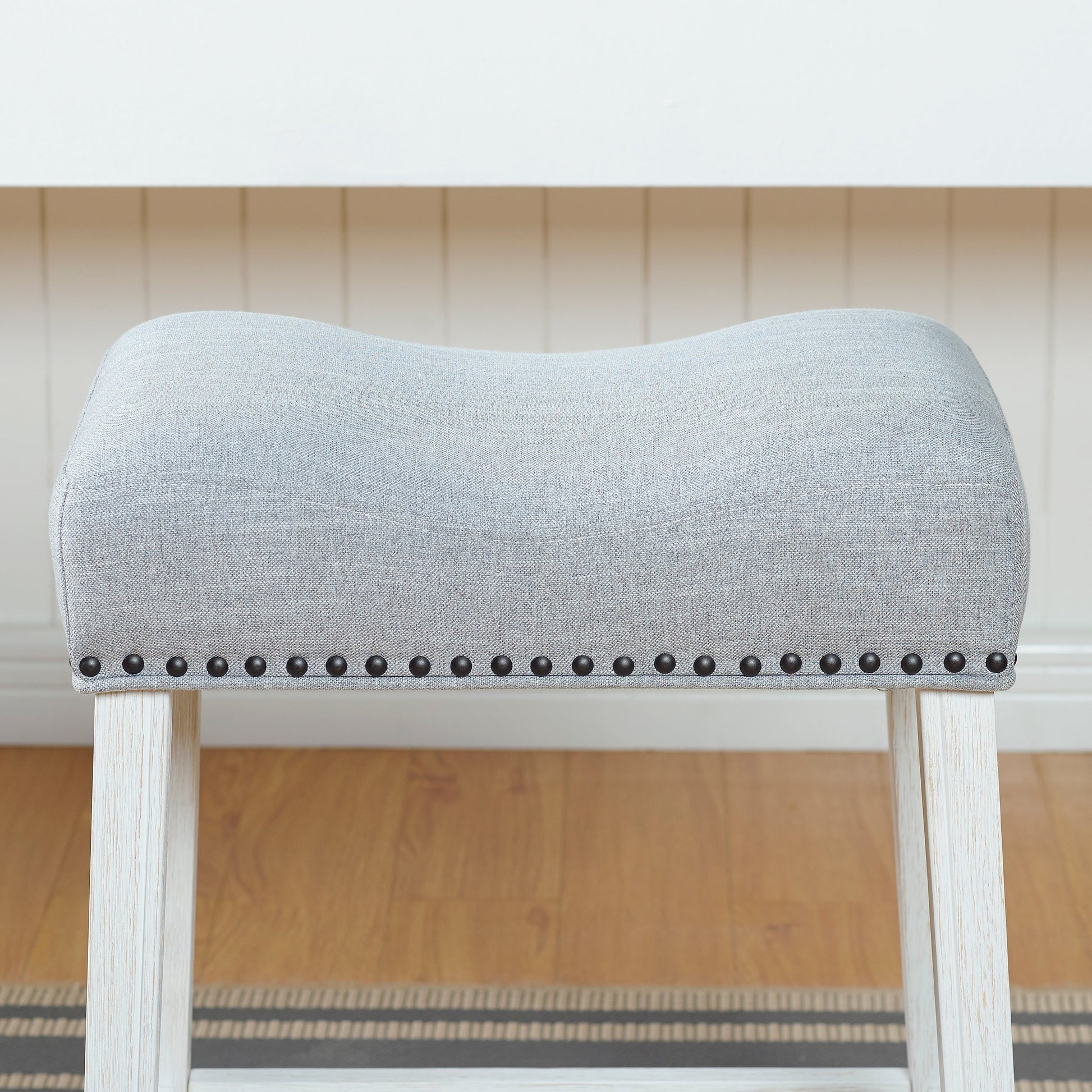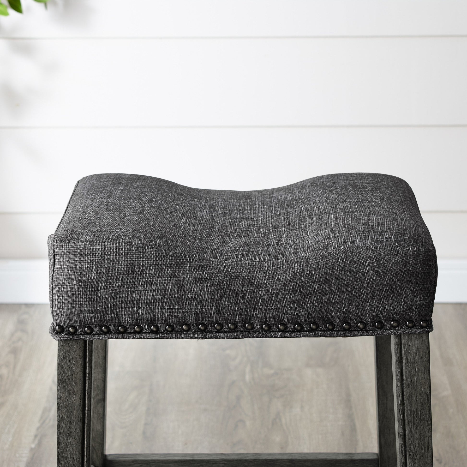 Add a modern touch to your home decor with The Gray Barn Barish backless saddle seat counter stools. This set of two contemporary stools features A-frame bases that come in different wood finishes to suit your preference. The seats are cushioned and upholstered in fabric, complete with nailhead trimming for a stylish finish that is both comfortable and visually appealing.