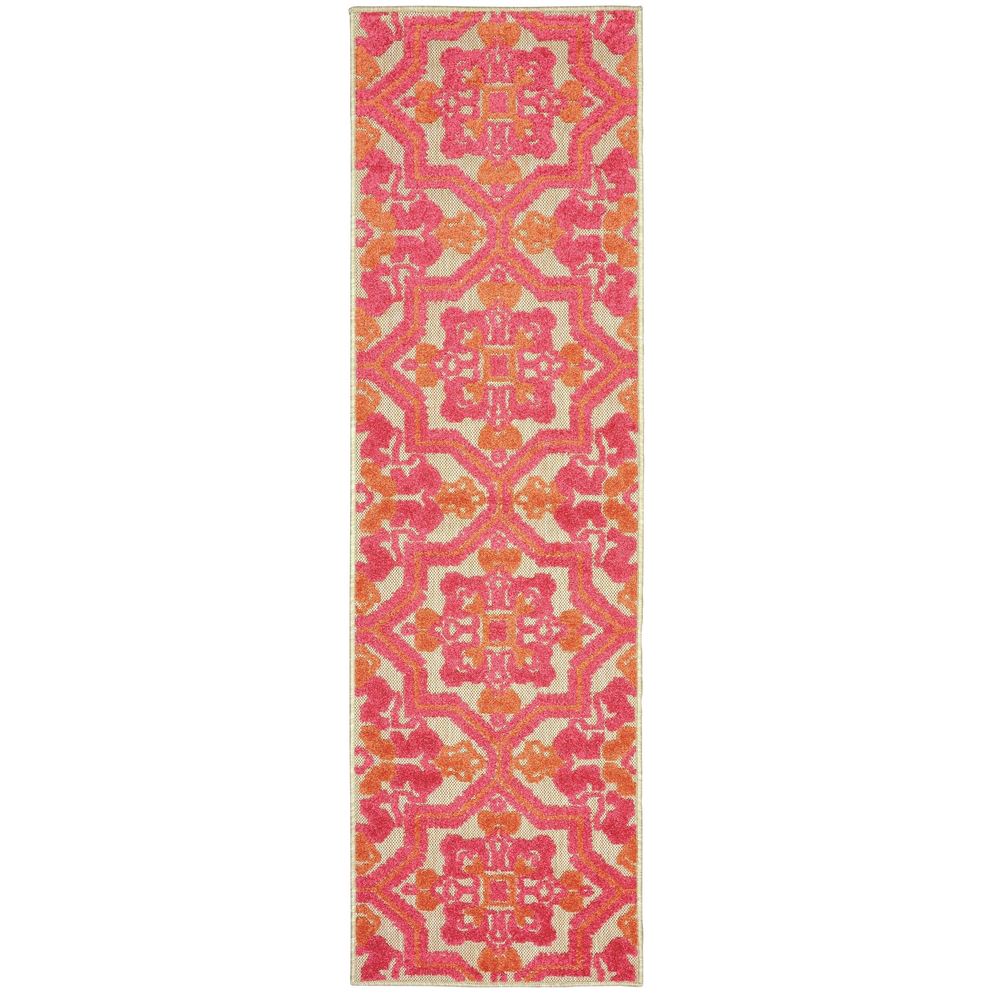 Vista Home Capri Mixed Pile Pink/Orange Floral Indoor- Outdoor Rug.