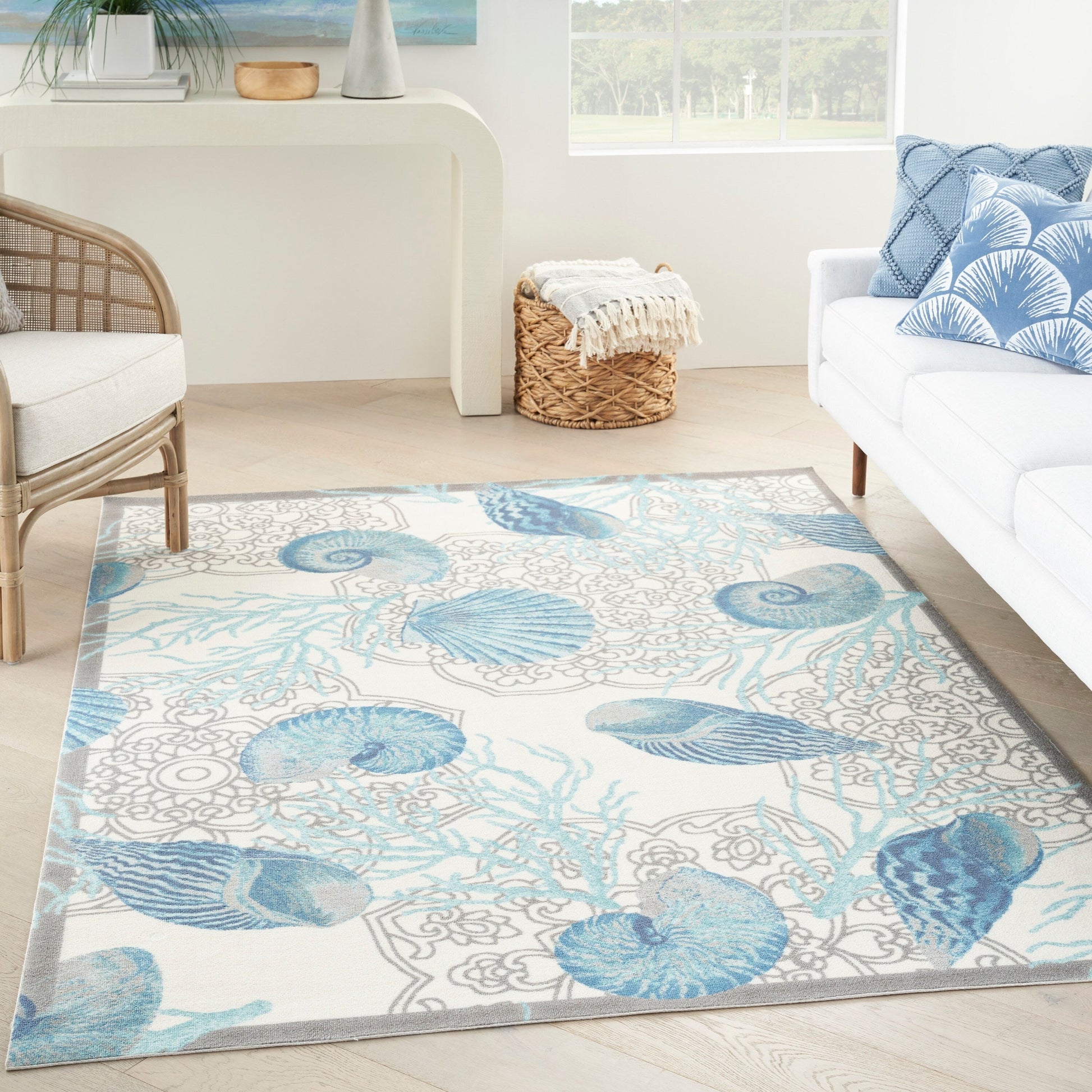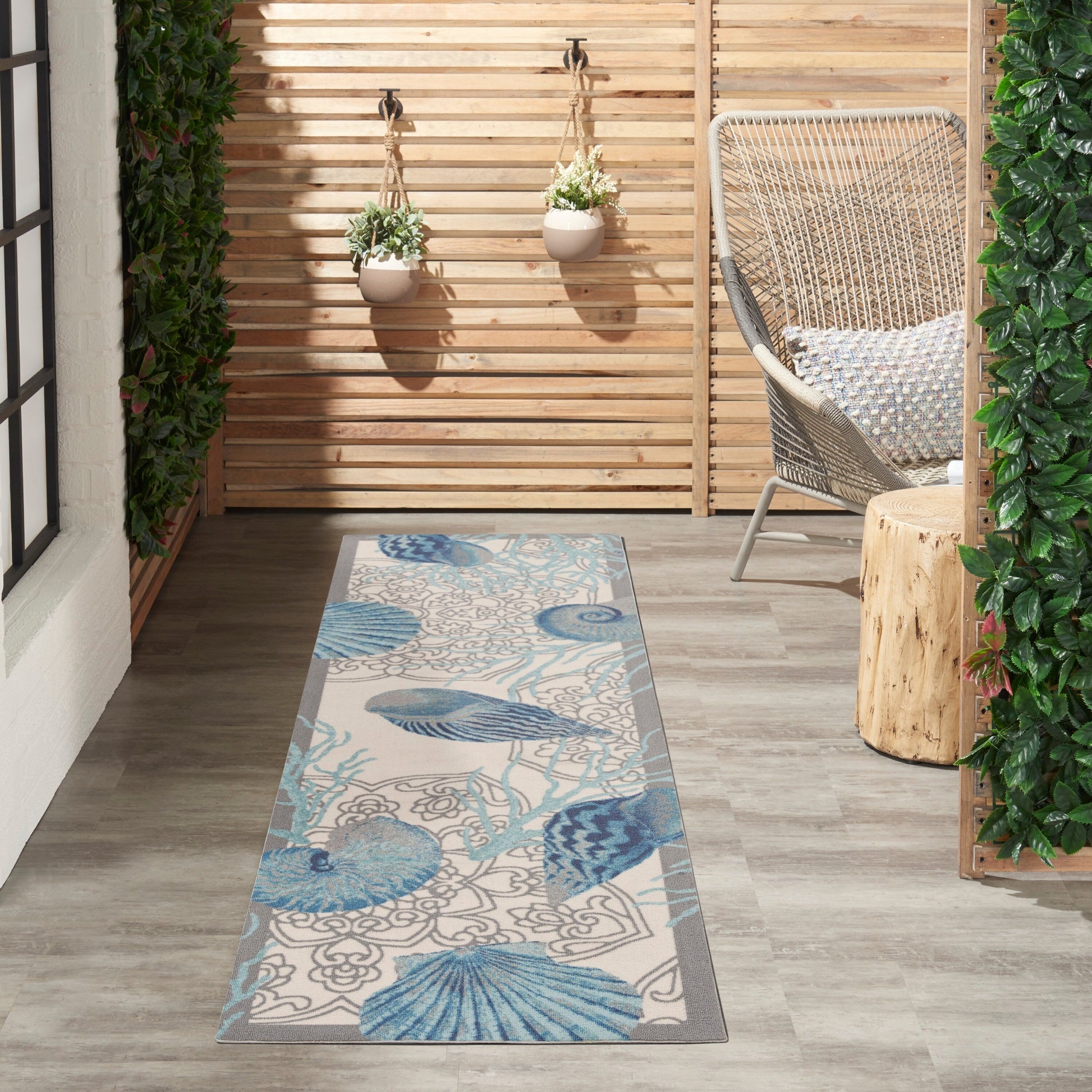 - Coastal outdoor rug adds a fun and breezy vibe to your d茅cor聽