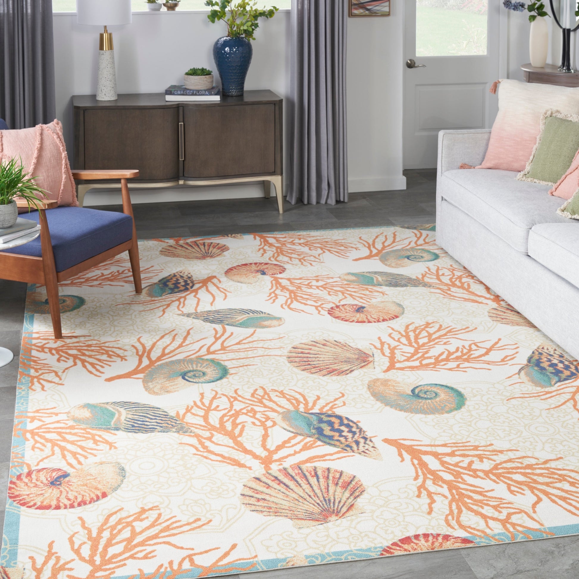 Waverly Sun & Shade Shore Thing Tropical Sea Shell Floral Indoor Outdoor Area Rug