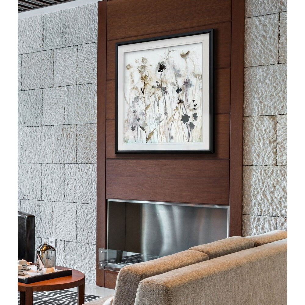 Bring the beauty of spring flowers into your home all year long with the 'Wildflower Mist I' framed print. This custom-cut and hand-joined artwork features a colorful blend of blue, white, grey, yellow, green, silver, and gold hues. With hardware included for easy hanging, this high-quality craftsmanship piece will be a lasting addition to your decor.