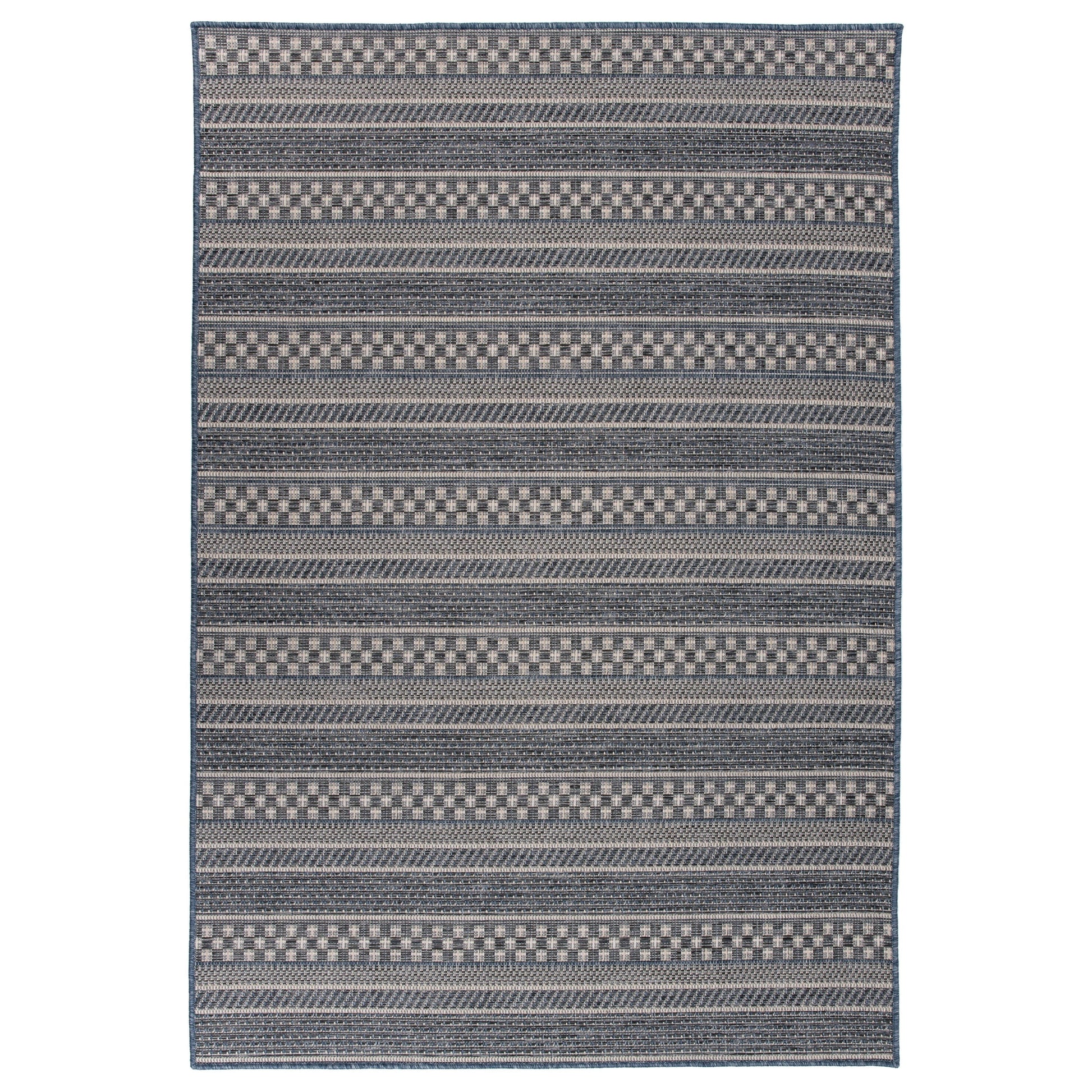 Add a touch of bohemian style to your indoor or outdoor space with this durable area rug featuring a geometric stripe design. Crafted from polypropylene, this rug is built to withstand the elements and resist stains, making it perfect for homes with kids and pets. The low pile height ensures easy maintenance, while the cream or blue color options complement any decor.
