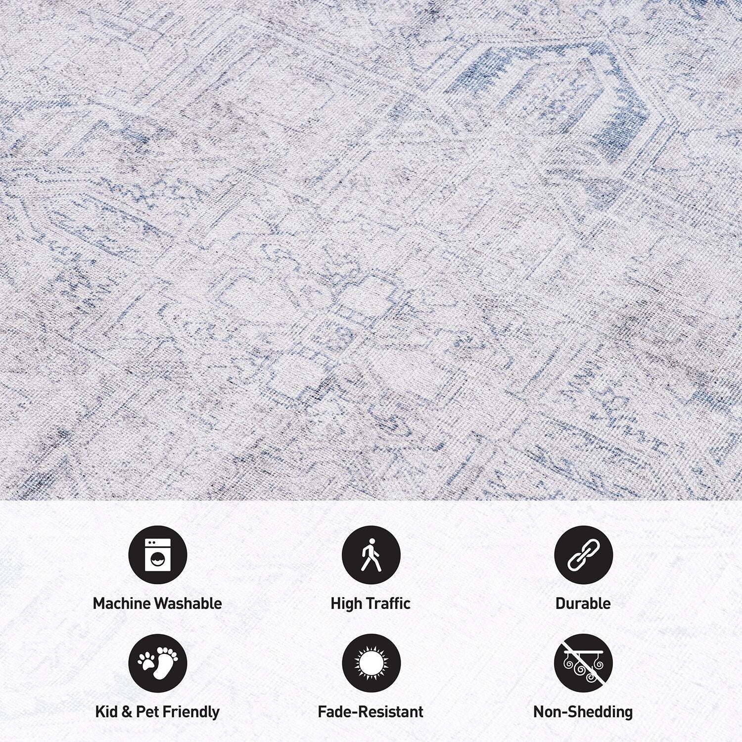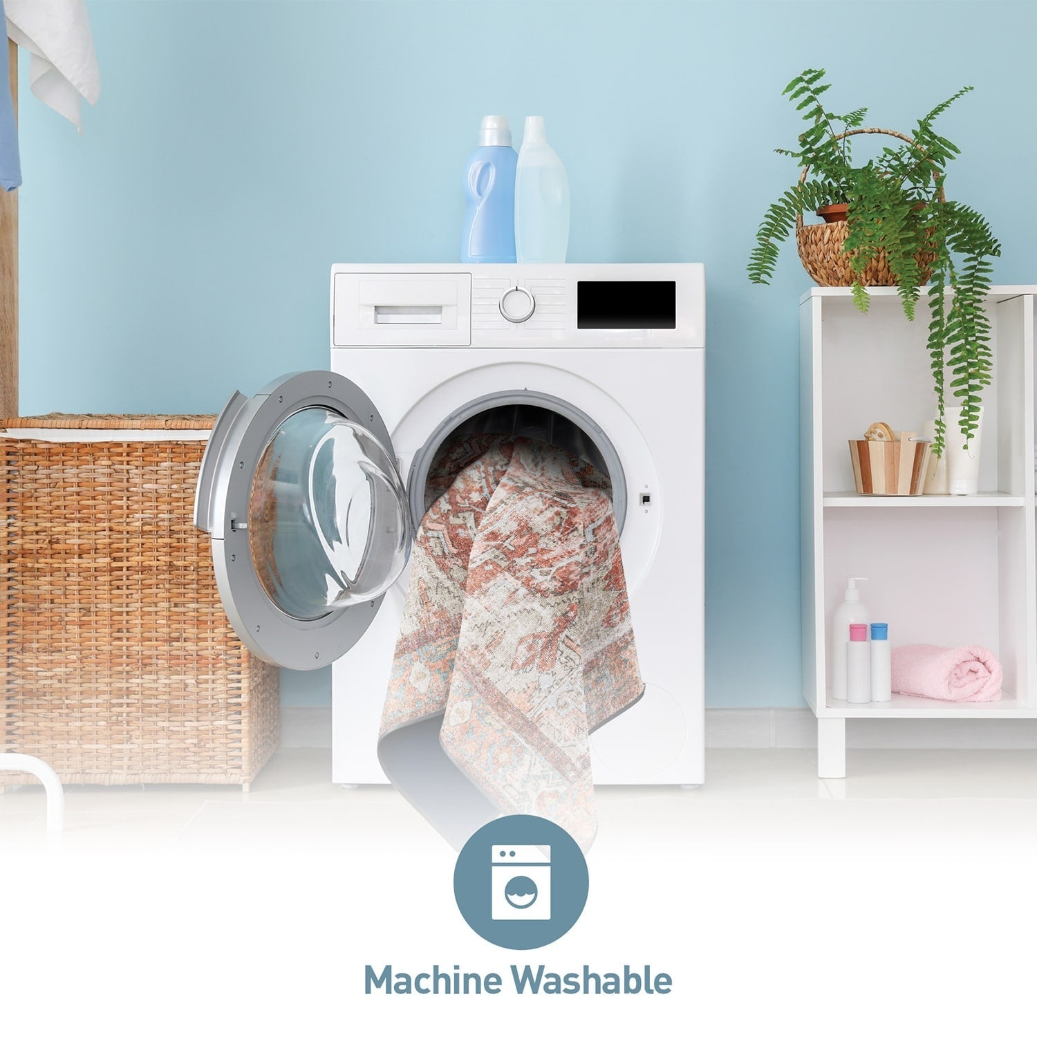 World Rug Gallery Vintage Boho Medallion Machine Washable Non Slip Area Rug