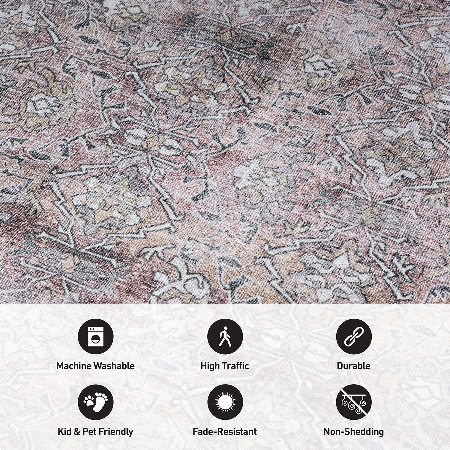 World Rug Gallery Vintage Distressed Machine Washable Non Slip Area Rug