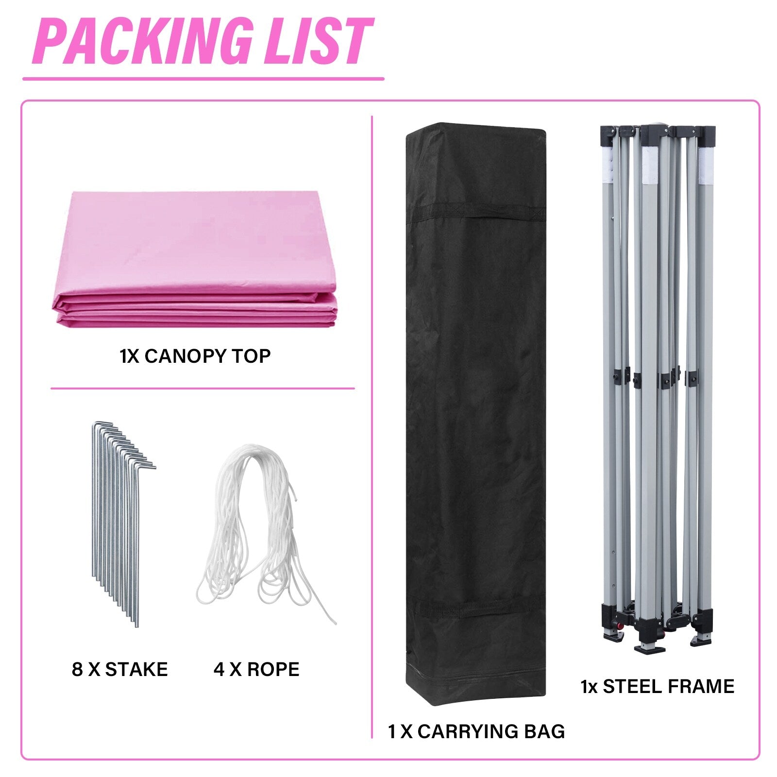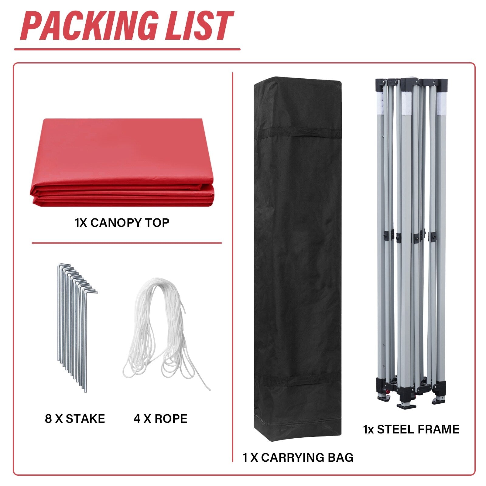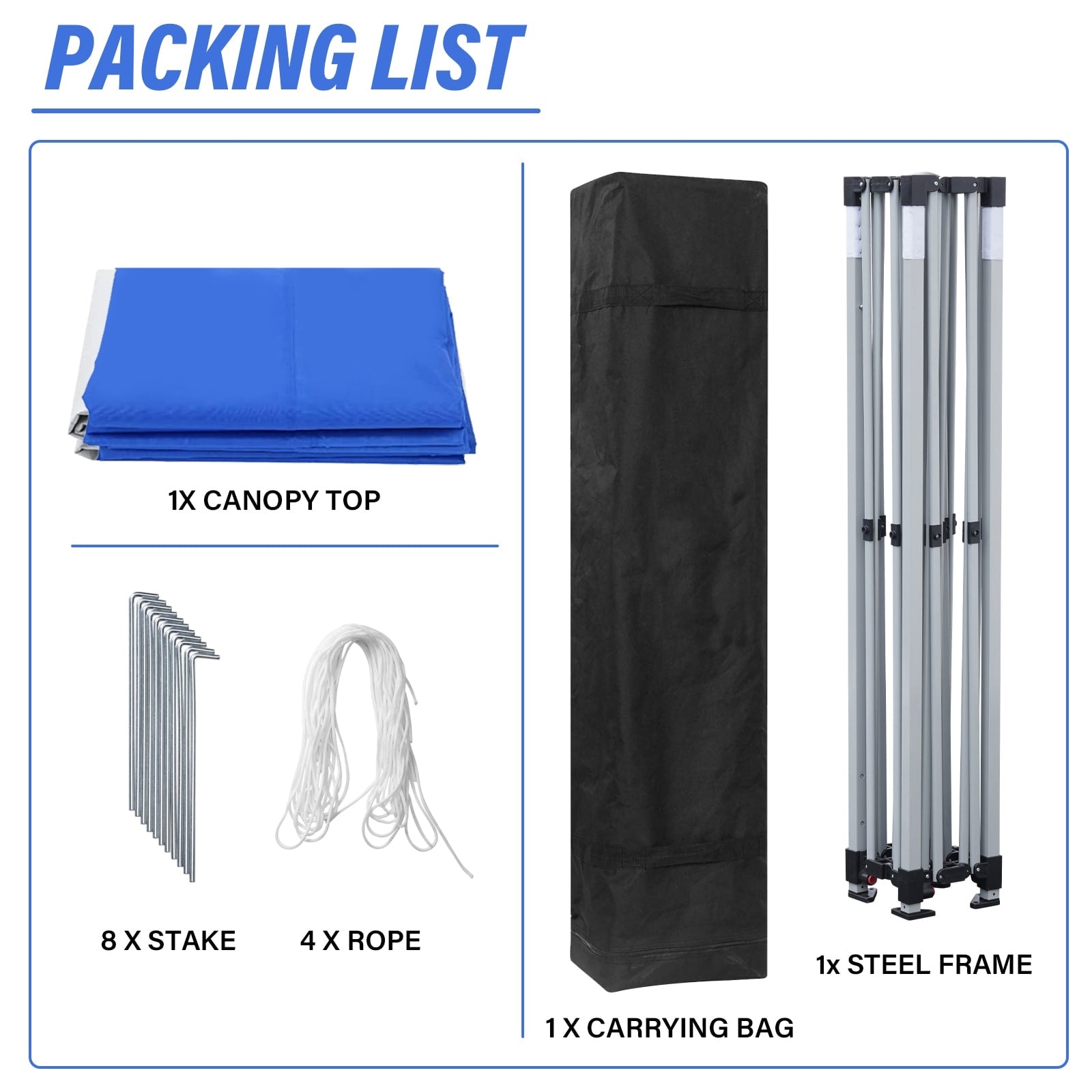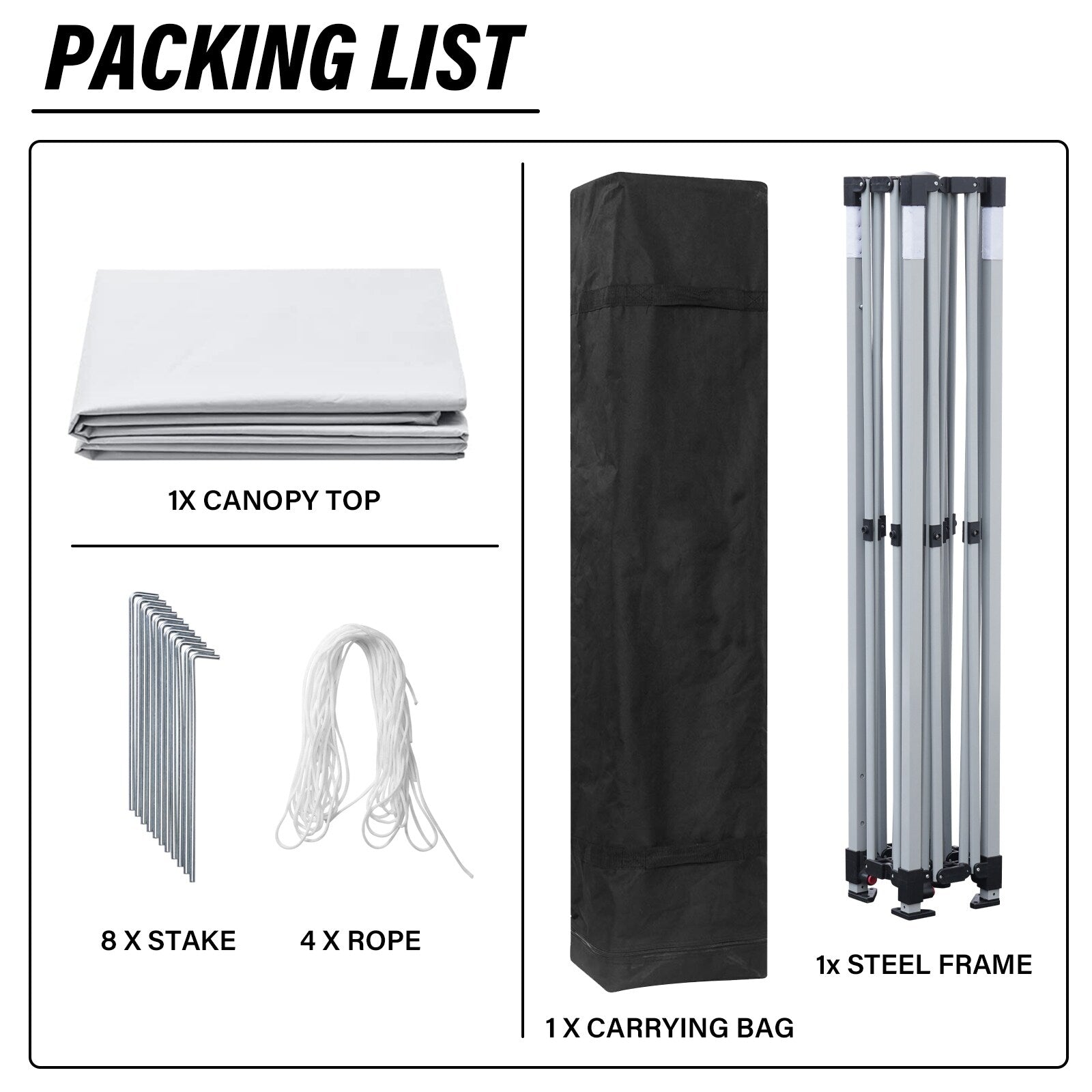 Perfect for outdoor events, this 10' x 10' pop up canopy tent provides shade and protection from the elements. The high-grade steel frame with white powder coat finish resists chipping, peeling, rust, and corrosion. Featuring a waterproof 210D Oxford tough fabric top that blocks 99% of UV rays, this tent is perfect for craft fairs, street festivals, picnics, tailgate parties, sporting events, weddings, and more. This portable and easy-to-set-up tent comes with a carrying bag and can be popped up in seconds by yourself or with a friend.