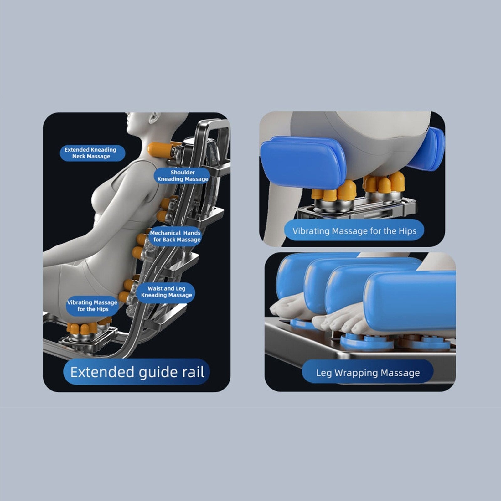 - 8 Fixed Rollers & Hip Massage: Featuring 8 rollers in the backrest for precise massage coverage of the back and waist, plus 2 dedicated rollers for hip relief.